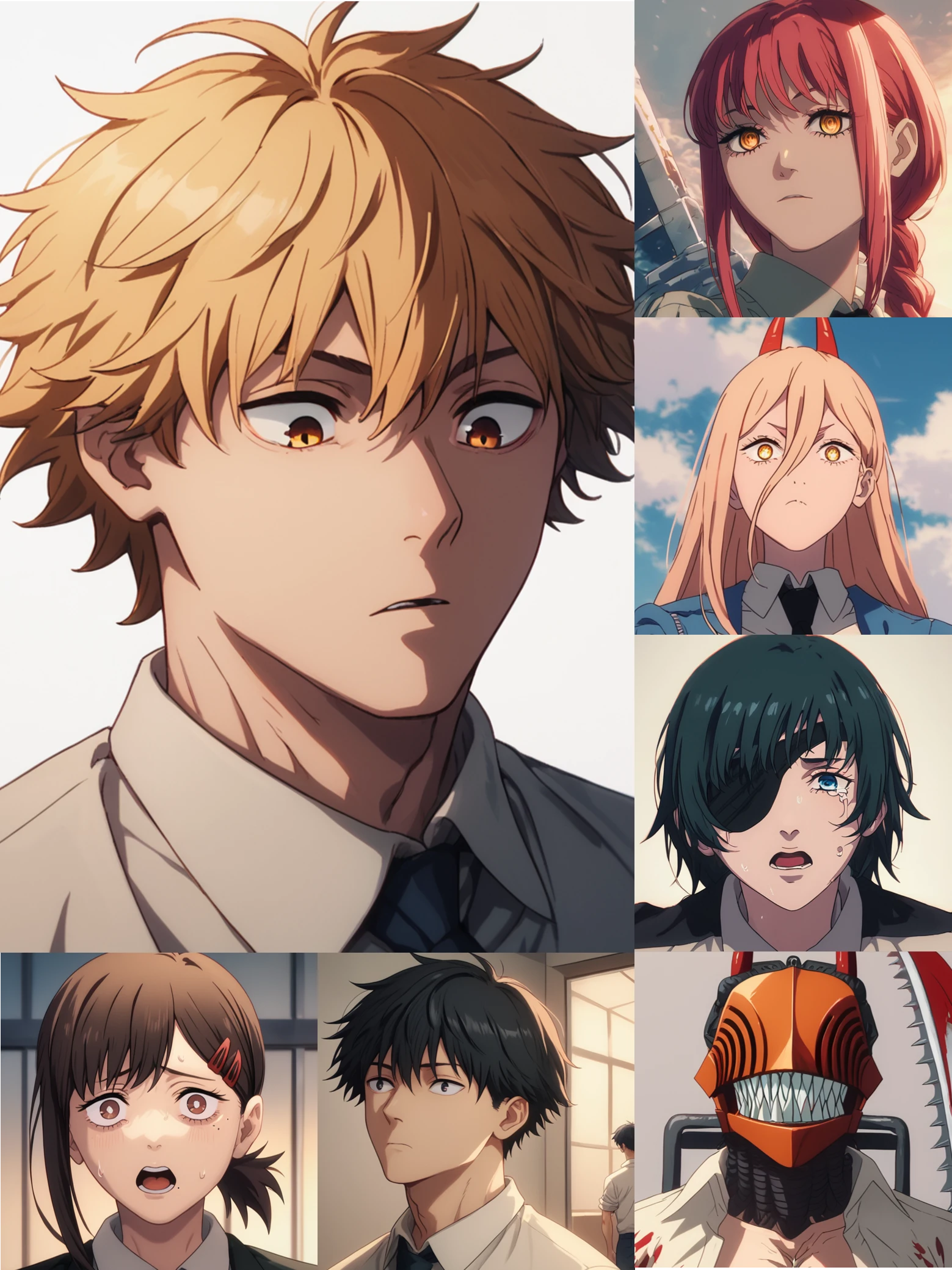 Trigger Words for Characters: Use names such as 'denji', 'power', 'aki hayakawa', 'makima', 'kobeni higashiyama', or 'himeno'.