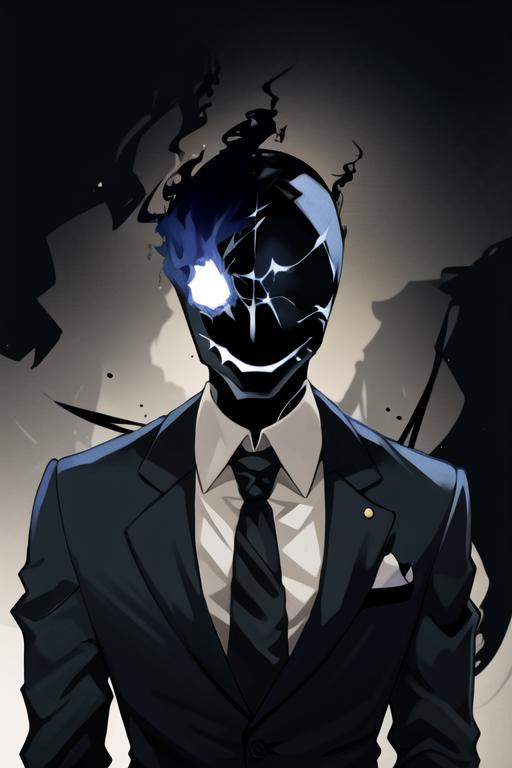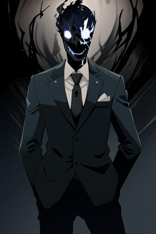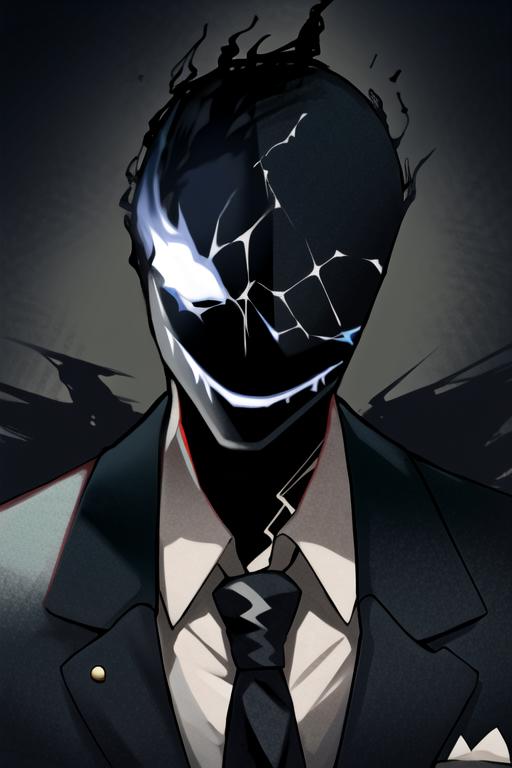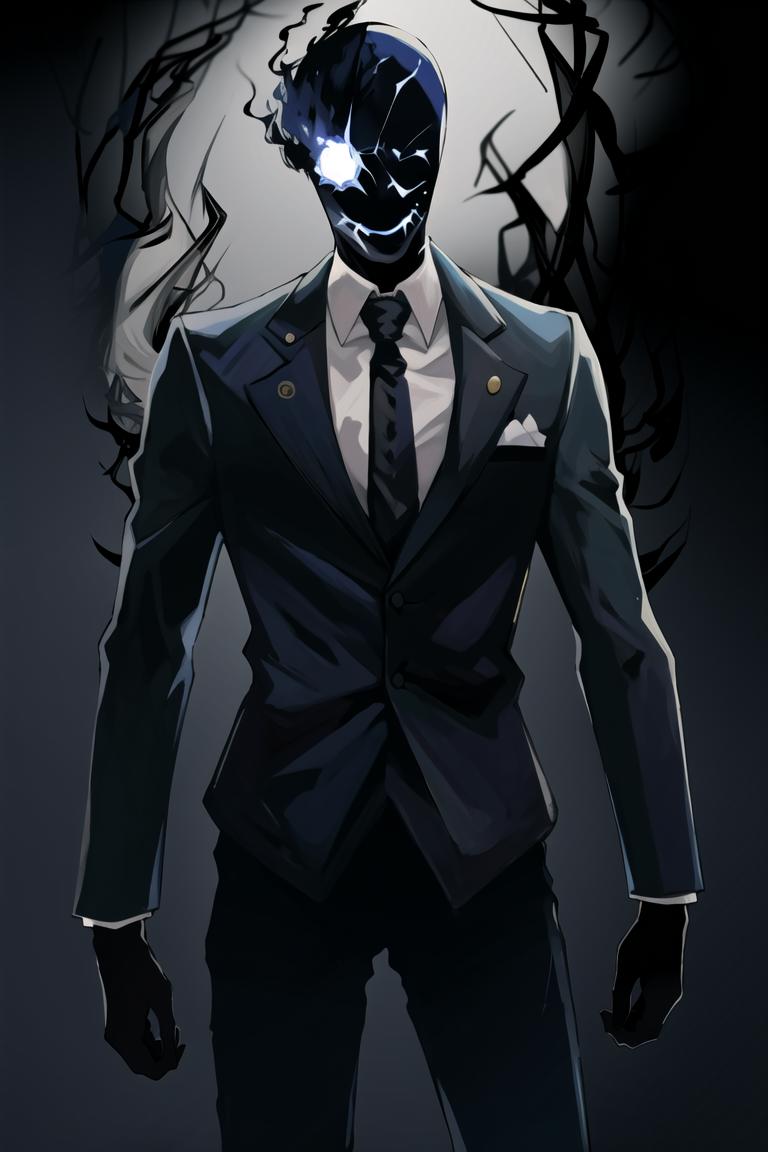 recommended prompt: kurofuku, necktie, male focus, black suit, black pants, cowboy shot, black gloves