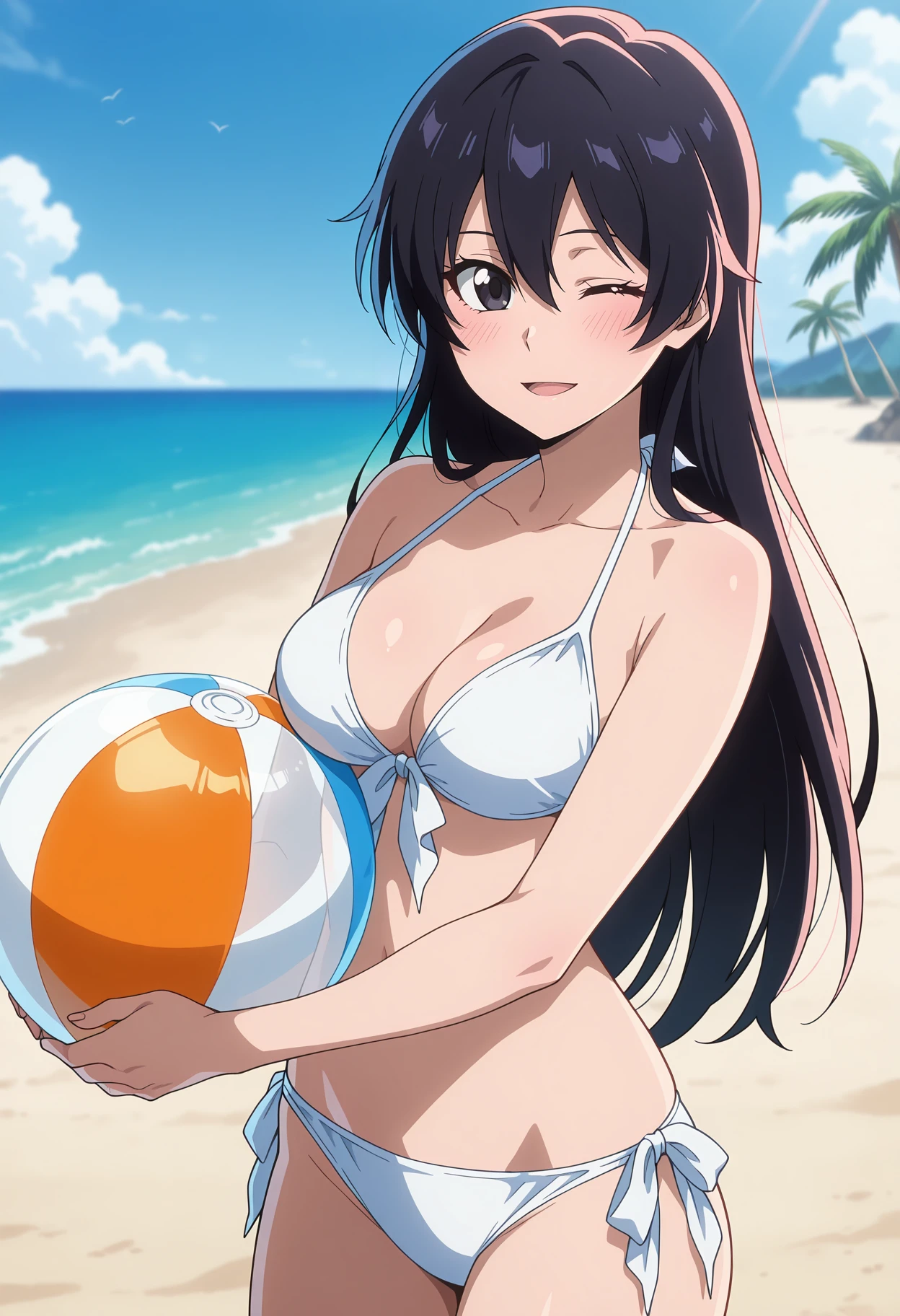 hair between eyes, long hair, black hair, black eyes, peaked cap, white headwear, high collar, white cape, military uniform, white jacket, sleeves rolled up, white gloves, heart belt, miniskirt, pleated skrit, white skirt