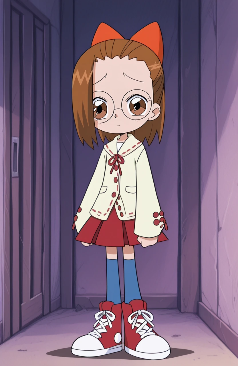 fujiwara hazuki, brown hair, brown eyes, ponytail, round eyewear