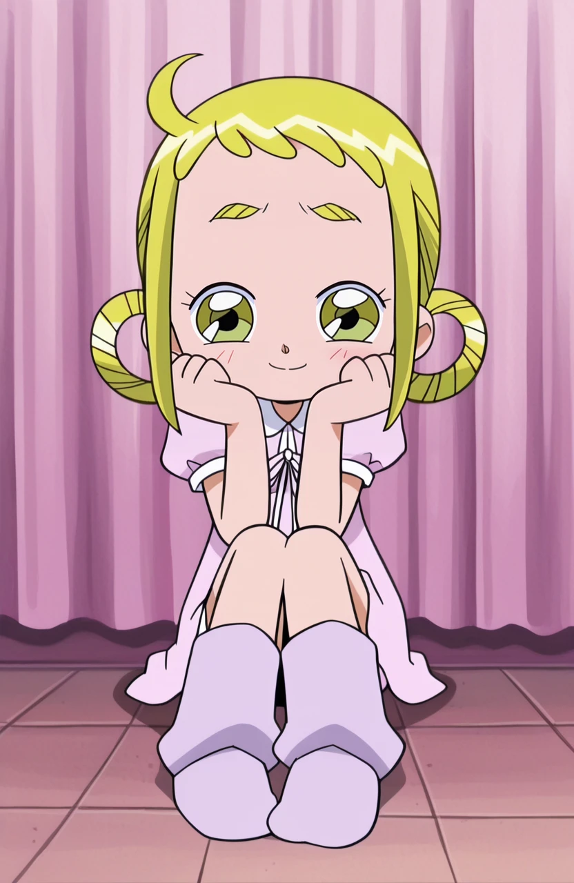 harukaze poppu, pink hair, pink eyes, short hair, short twintails, toddler