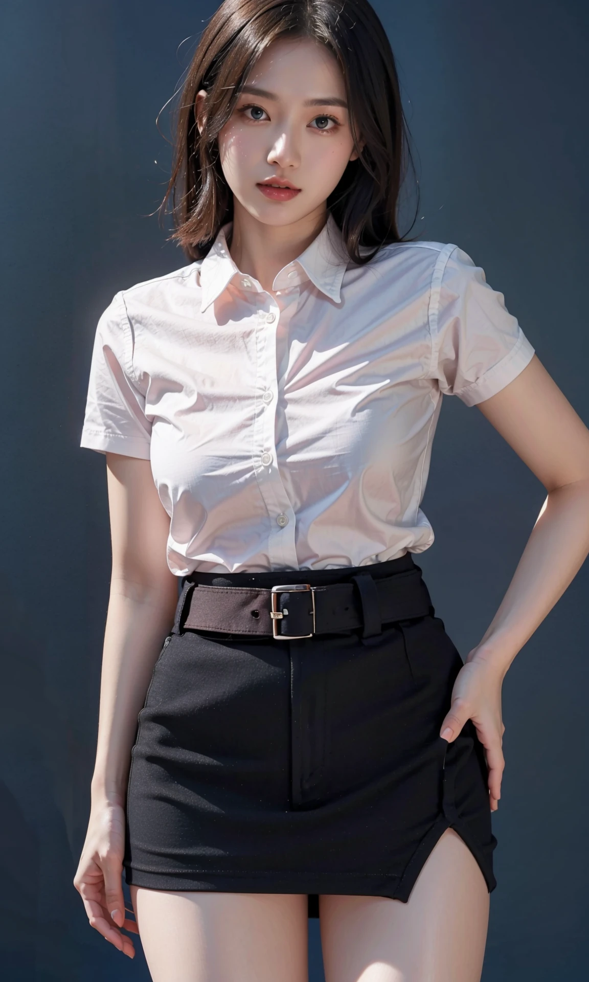 Trigger Words : pencilskirt with brown belt,