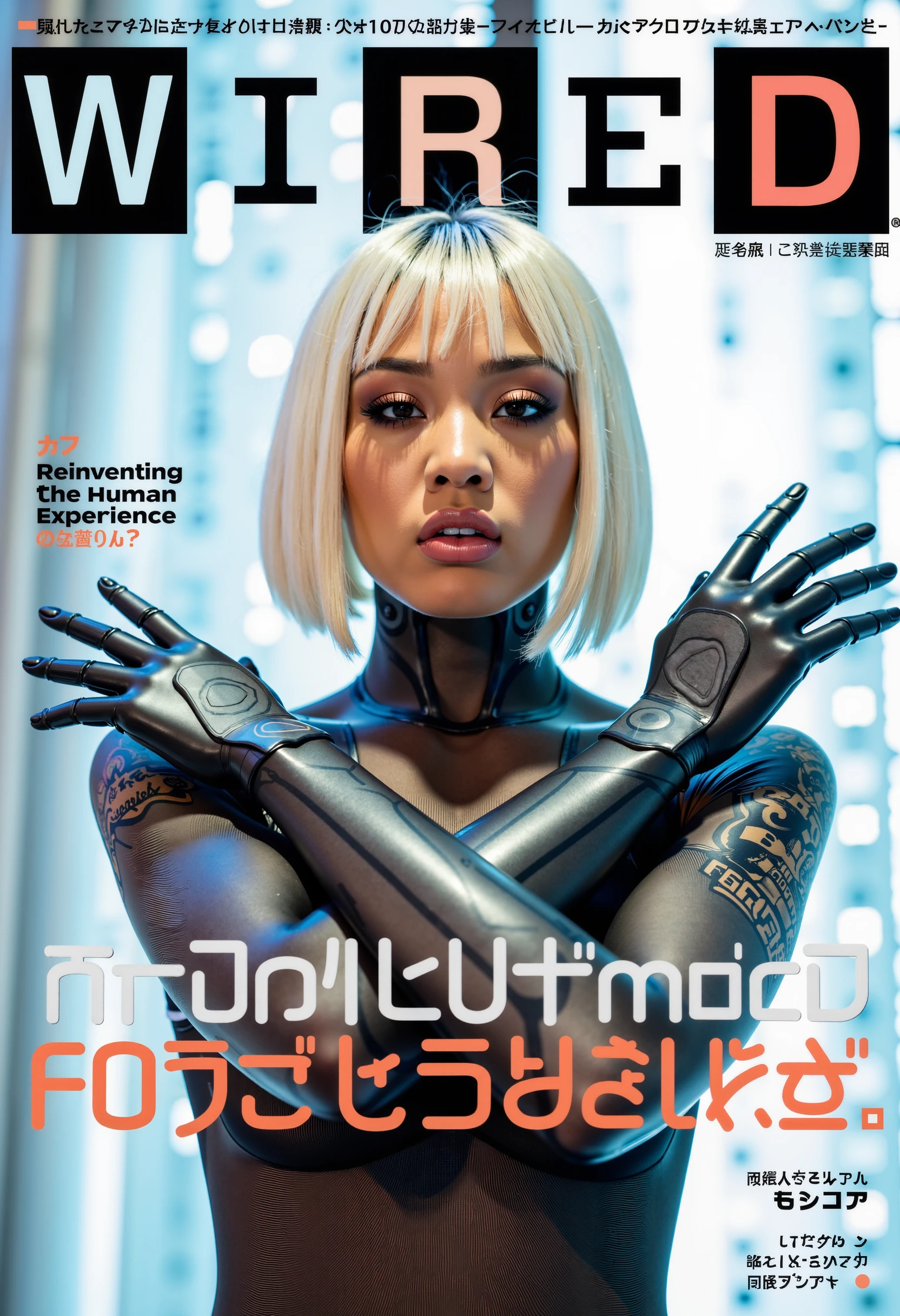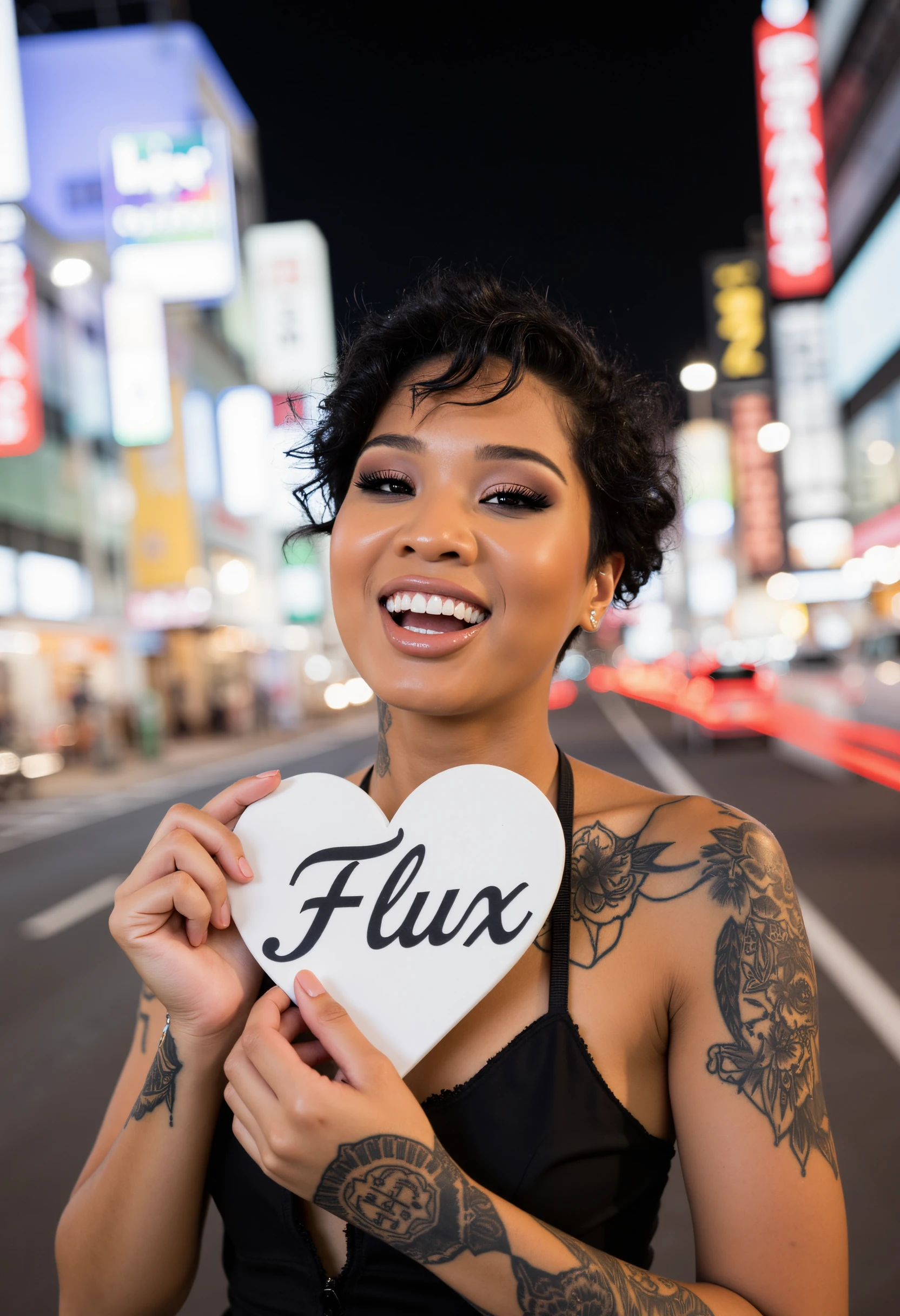 • Her short, dark, asymmetrical hairstyle sometimes bleeds into the output when different hairstyles and colours are prompted.