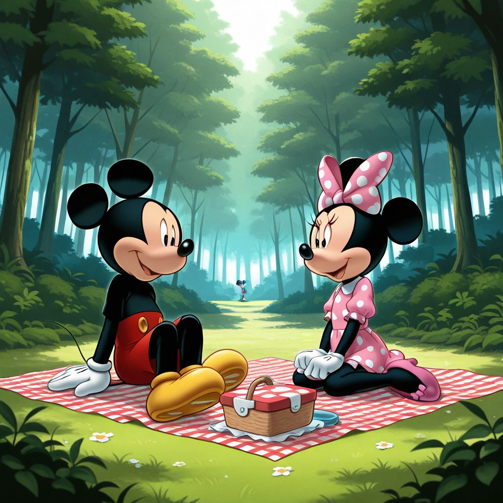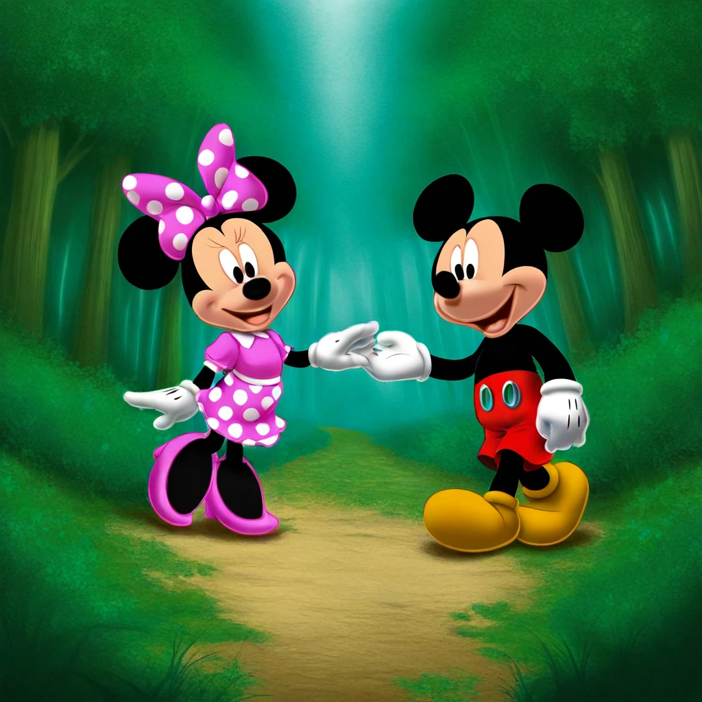 micknie, (1boy, mickey_m), break, (1girl, minnie_m, hairbow, dress)