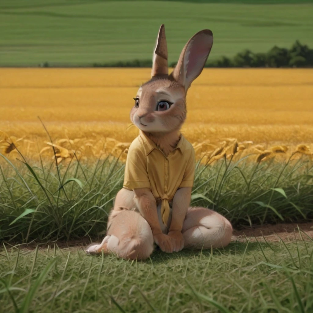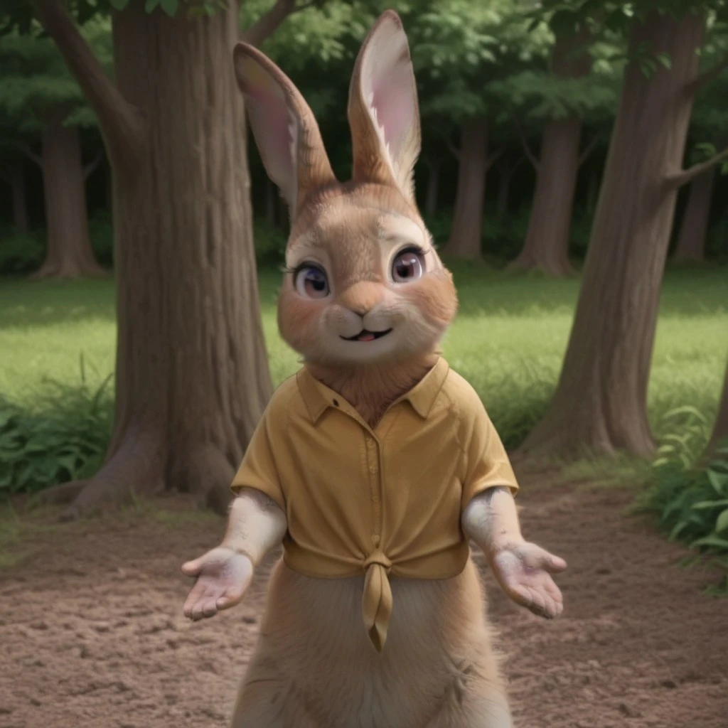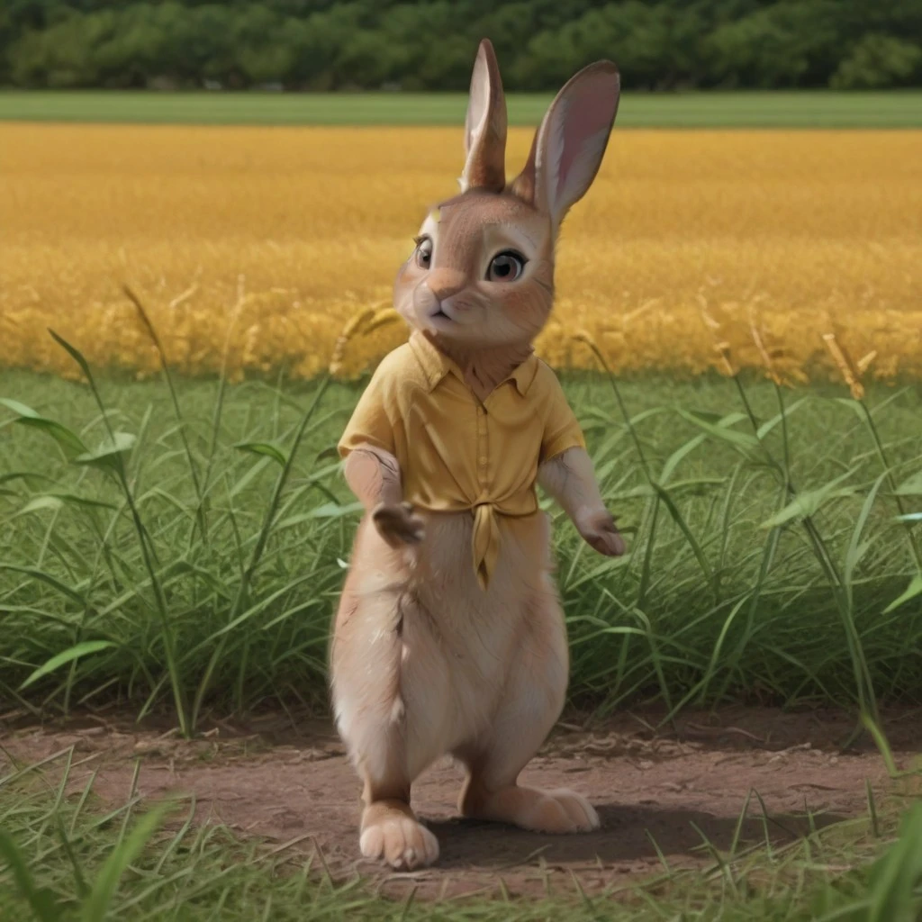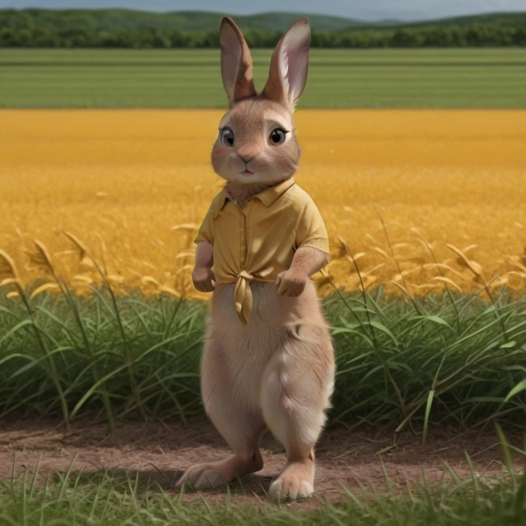 MopsyRbbt18il, semi-anthro, female, rabbit_girl, tan fur, brown eyes, yellow shirt, tied front,