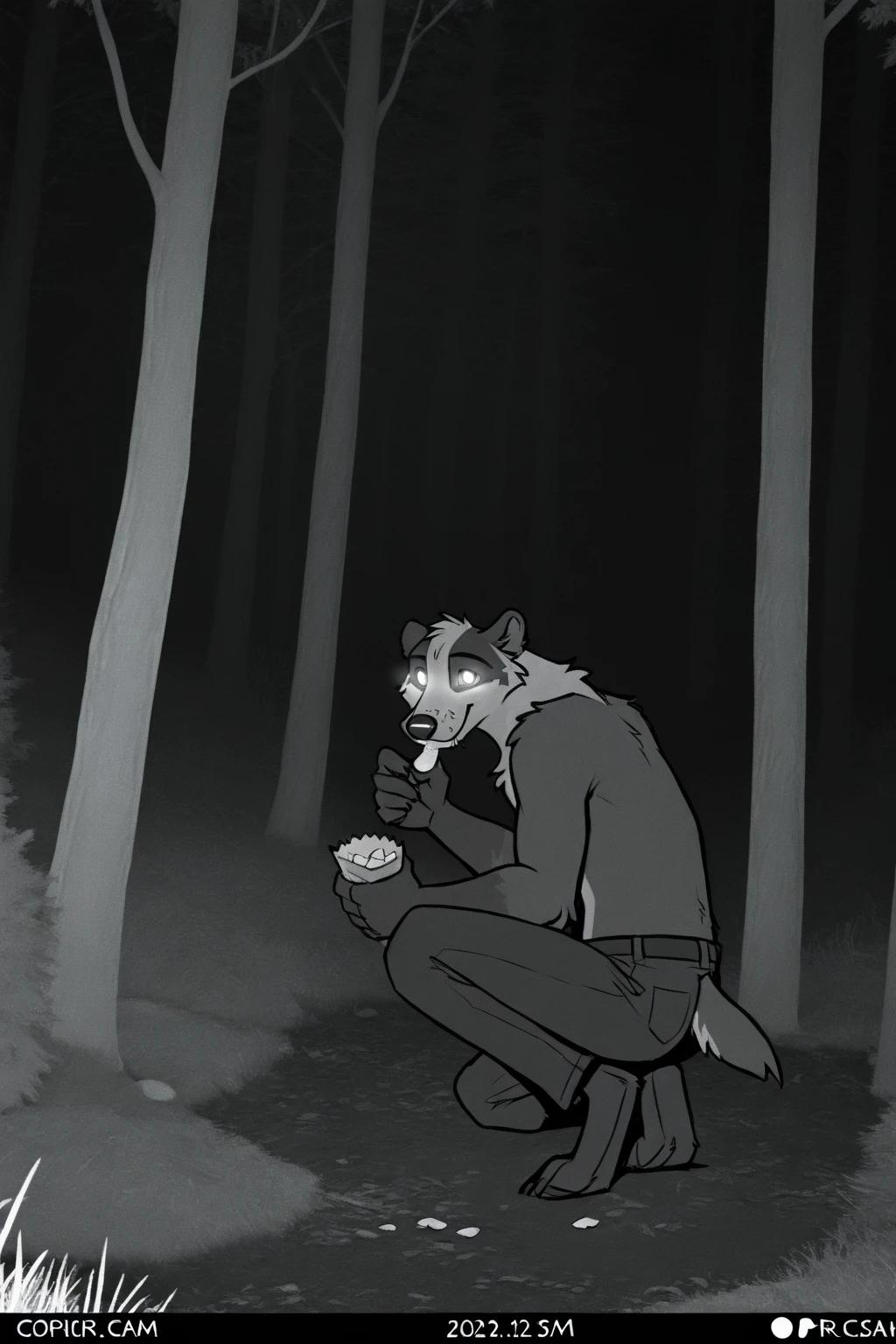Worth adding: night, dark, forest, grass, film grain, glowing eyes,