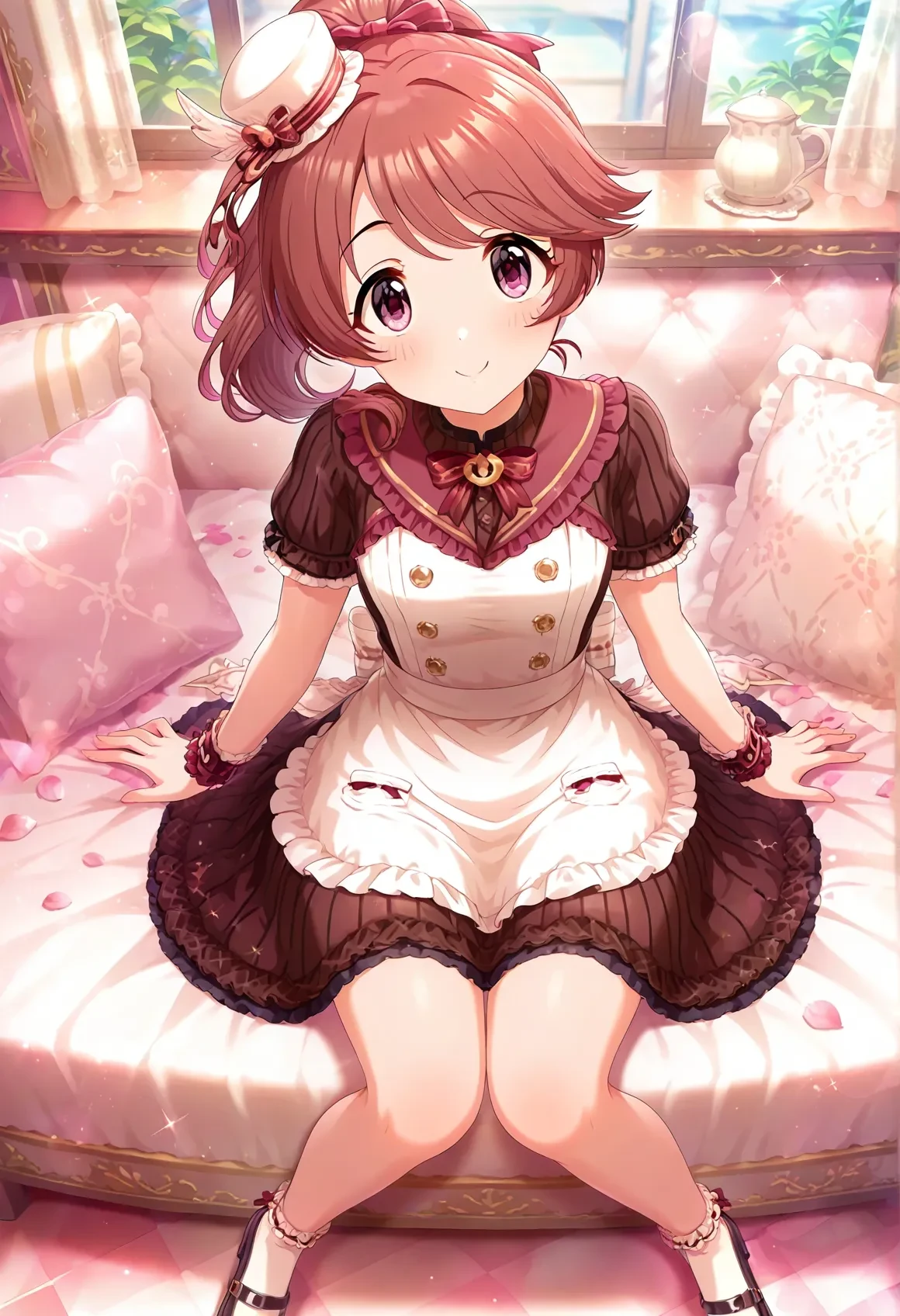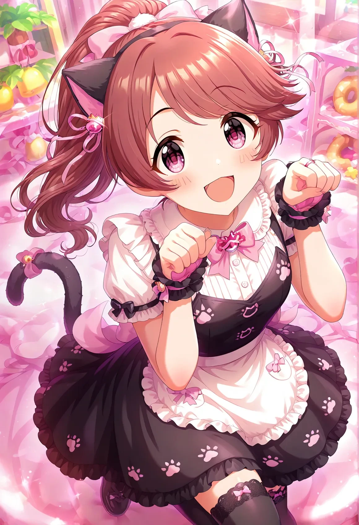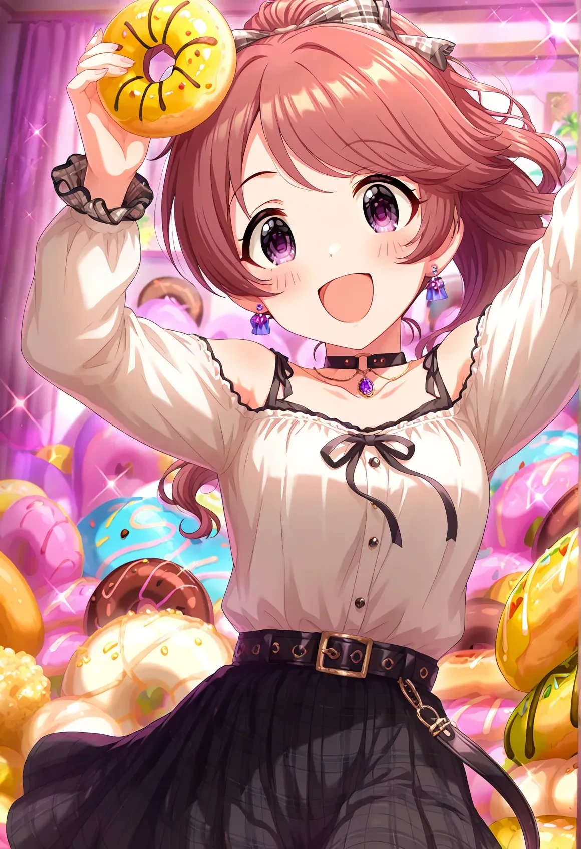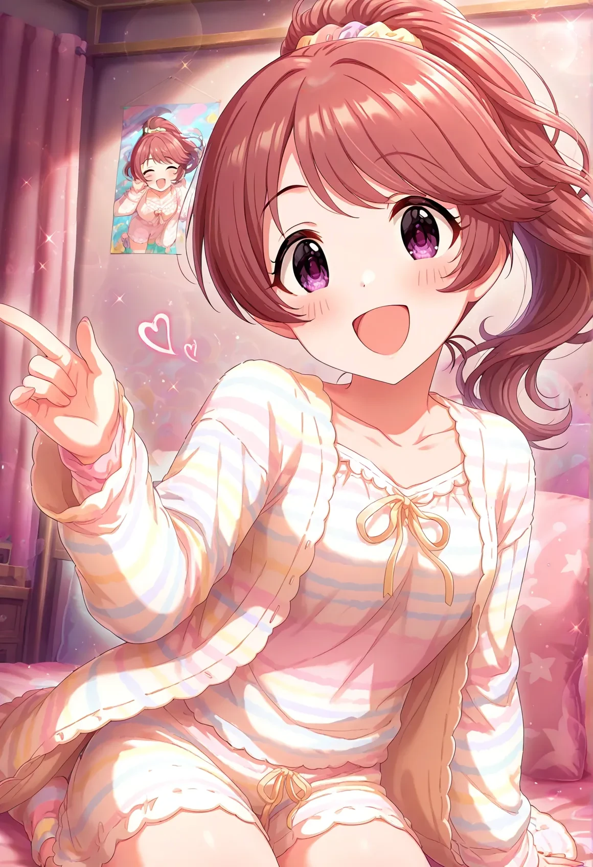 norikoshiina, brown hair,ponytail,pink eyes, purple eyes