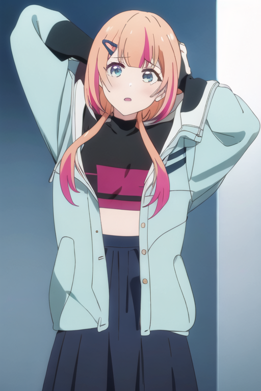optional trigger words: blue jacket, sneakers, crop top (for vtuber version)