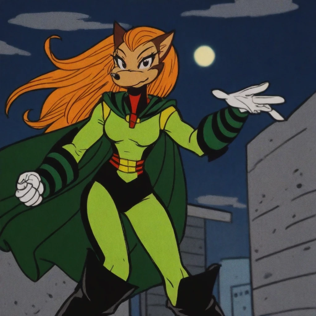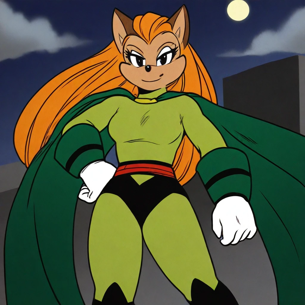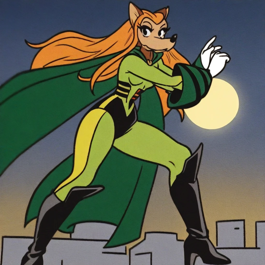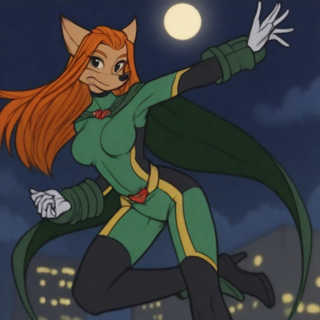 super hero clothes, dark green cape, arm armor, black high heels boots, white gloves,