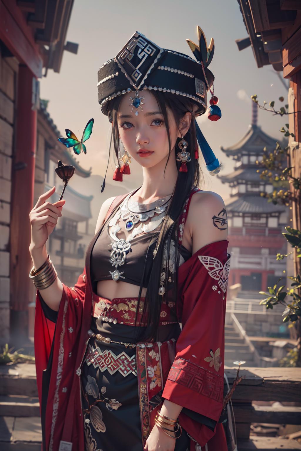 prompt:jewelry,bracelet,long sleeves,tattoo,Miao hat(hat I am not satisfied, if you must wear can try)