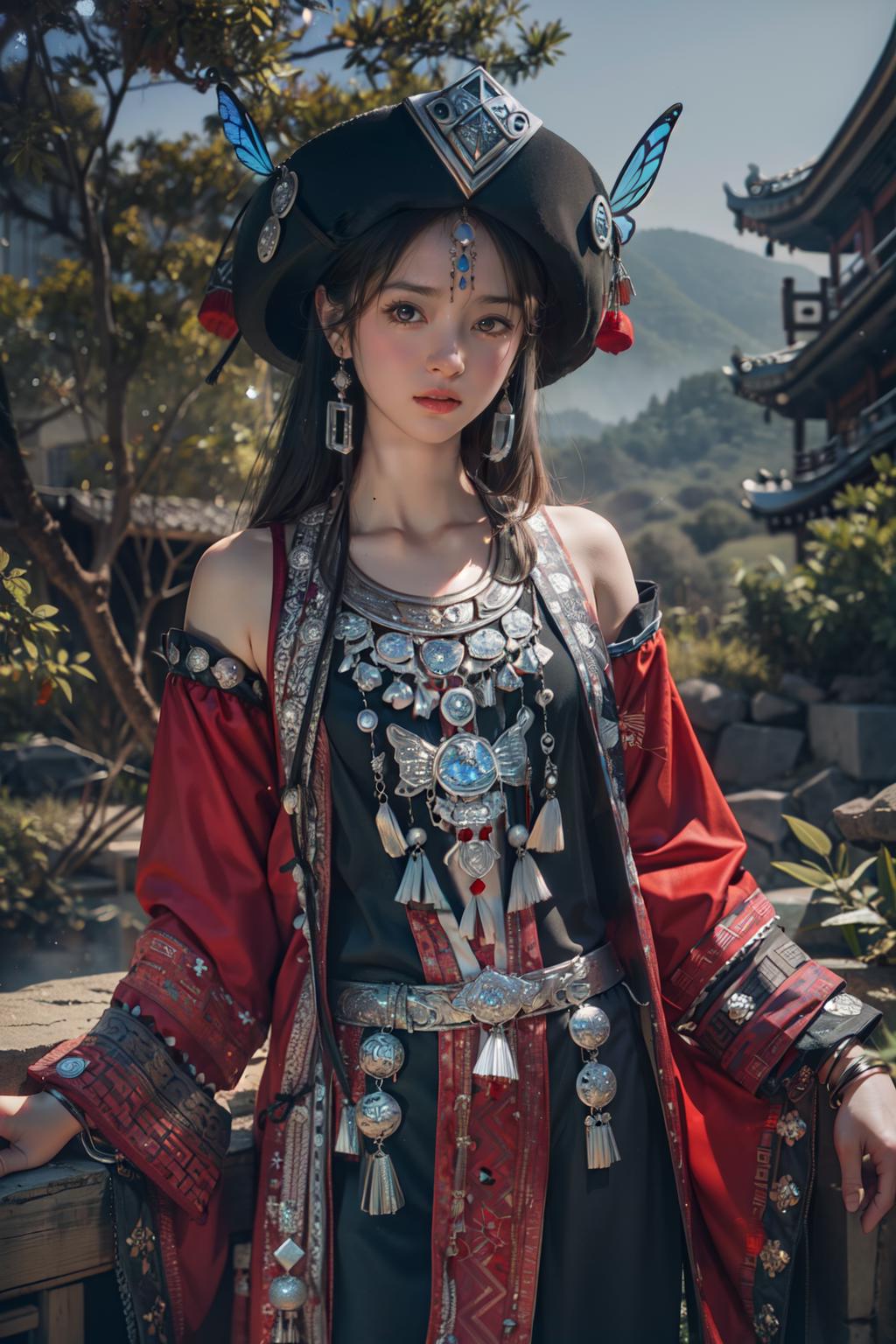 关键词:jewelry,bracelet,long sleeves,tattoo,Miao hat(帽子我不太满意,如果你非要戴可以尝试一下)