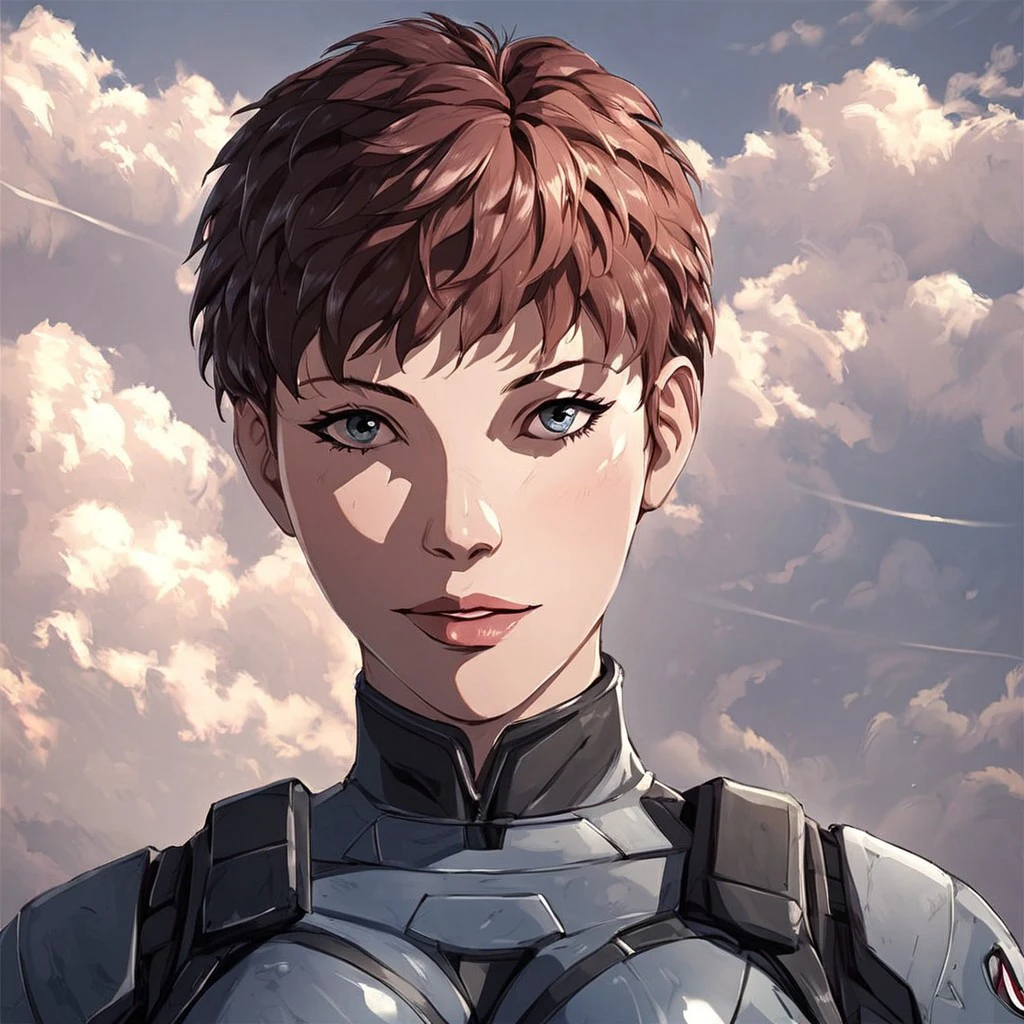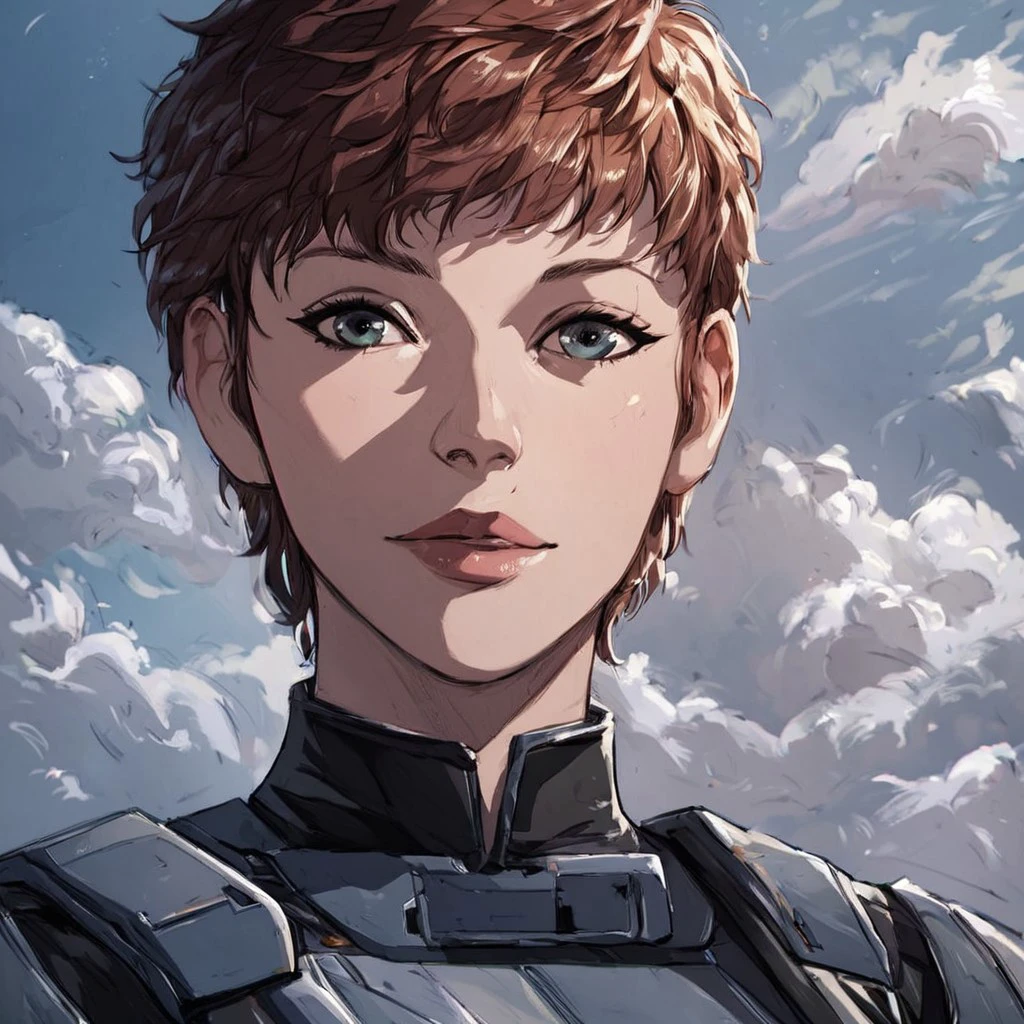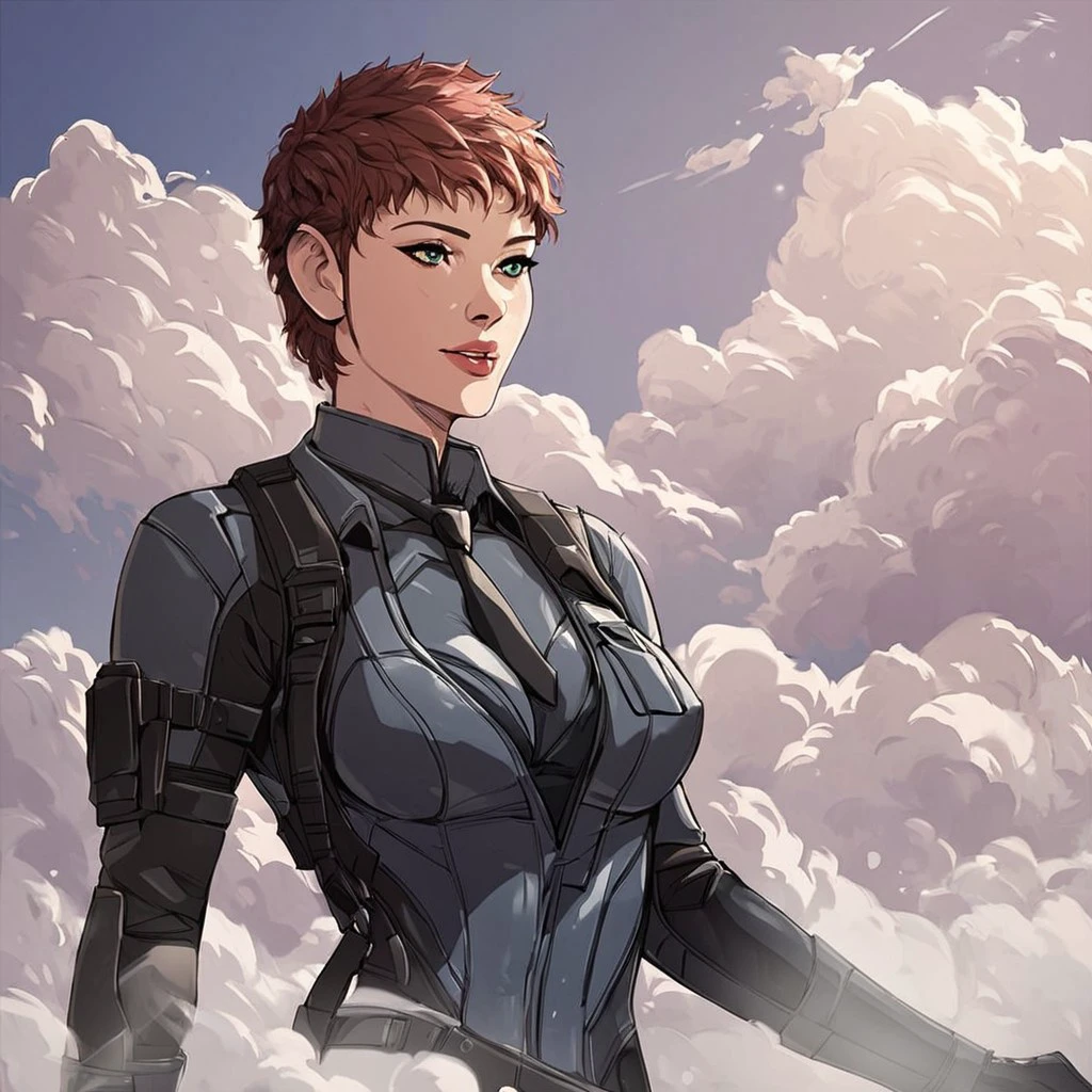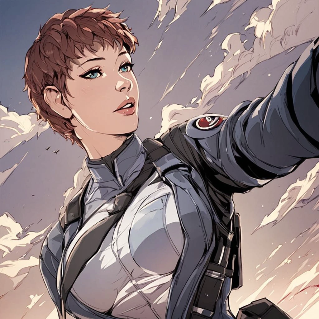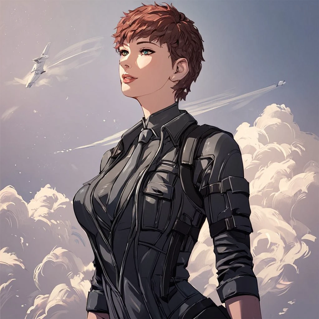 Breast, short hair, pilot suit, science fiction,