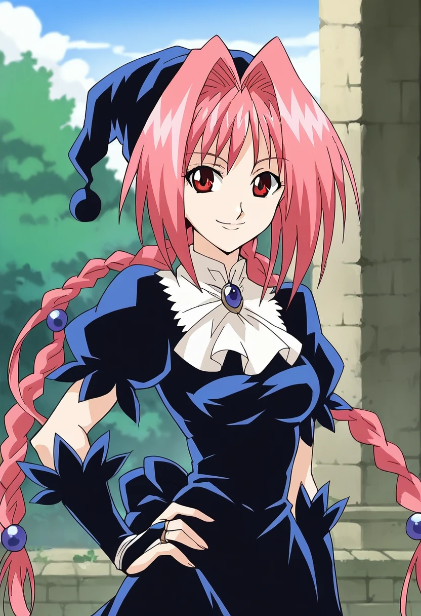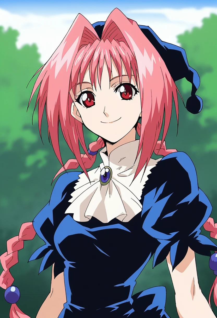 d0r0thyMt, pink hair, hair intakes, long hair, twin braids, red eyes, hat