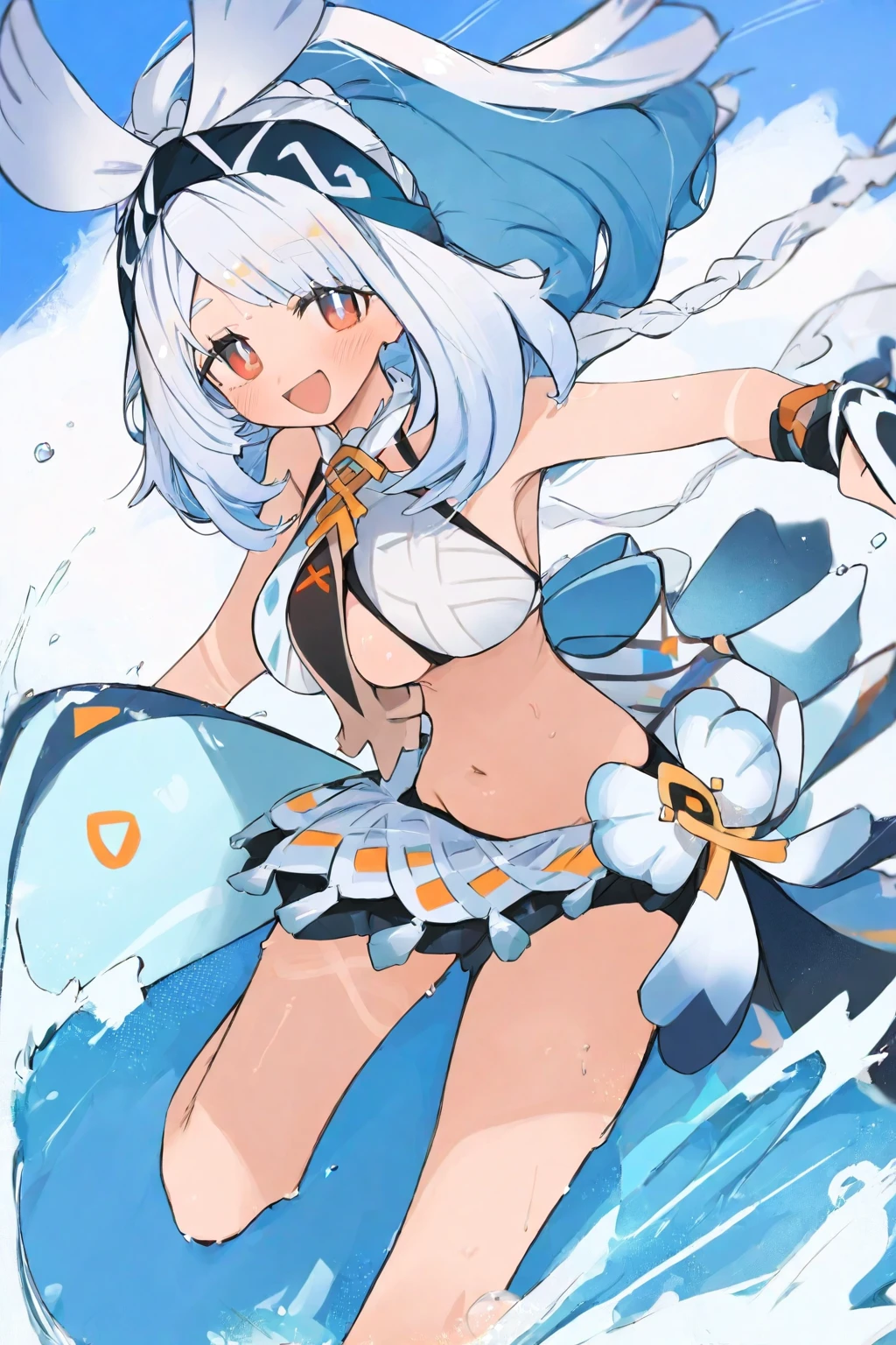 orange eyes,multicolored hair,blue hair,white hair,blue hairband