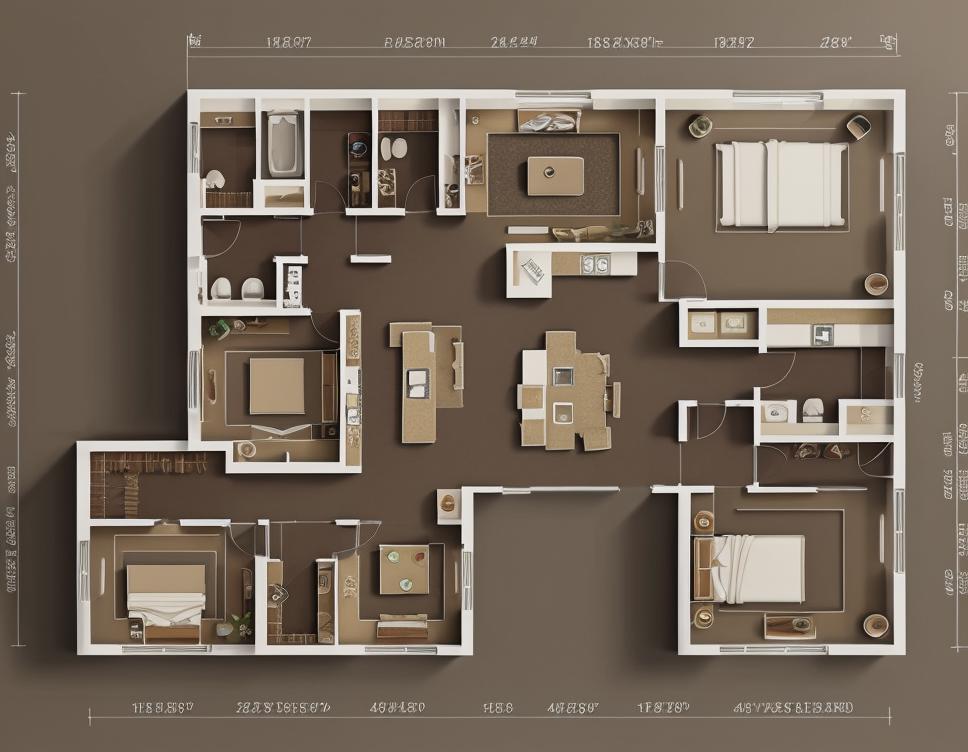 正向提示词:Cream style background,Brown background,Rendering floor plan of the apartment layout,top view,no humans,<lora:qCreamstyle:0.5>,