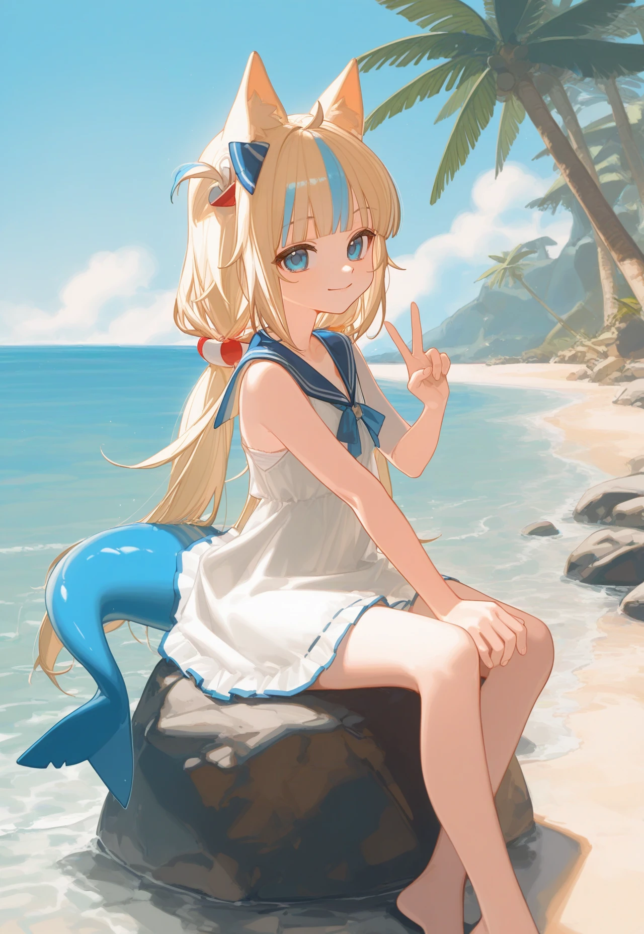 sameko saba, multicolored hair, animal ears, bow, blunt bangs, low twintails,