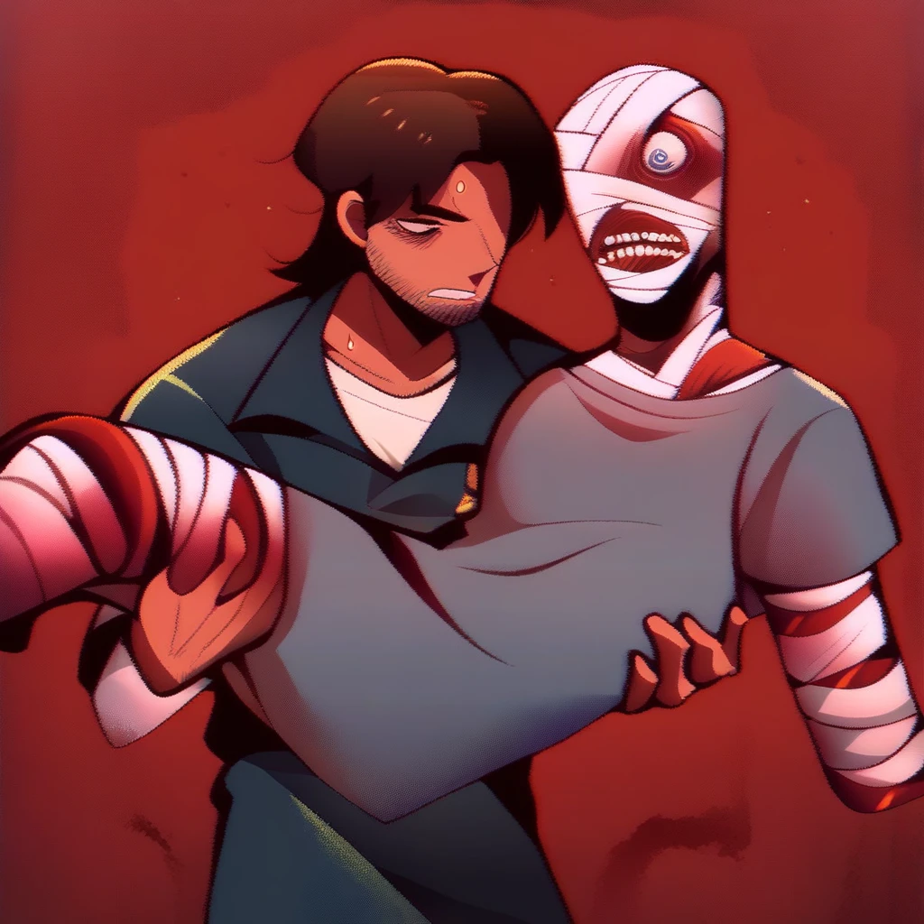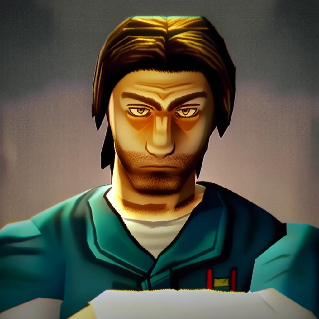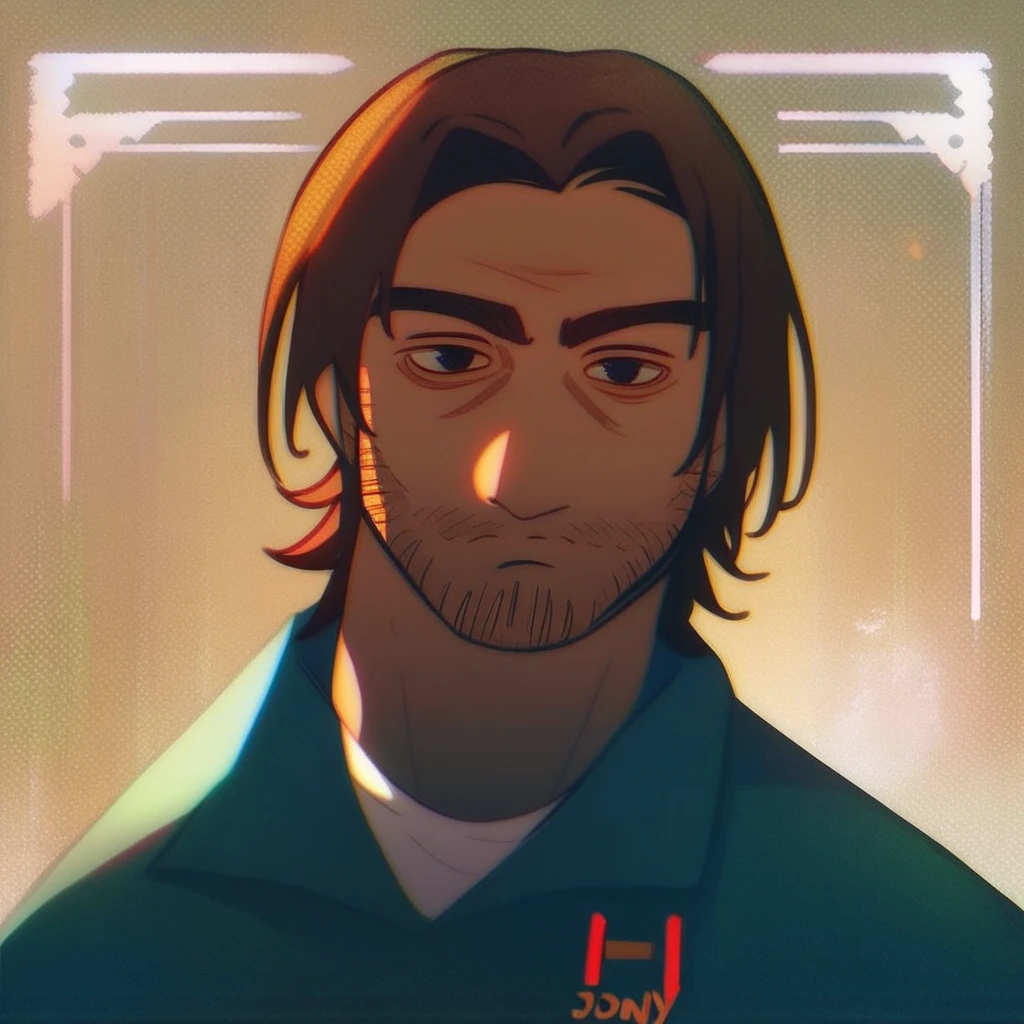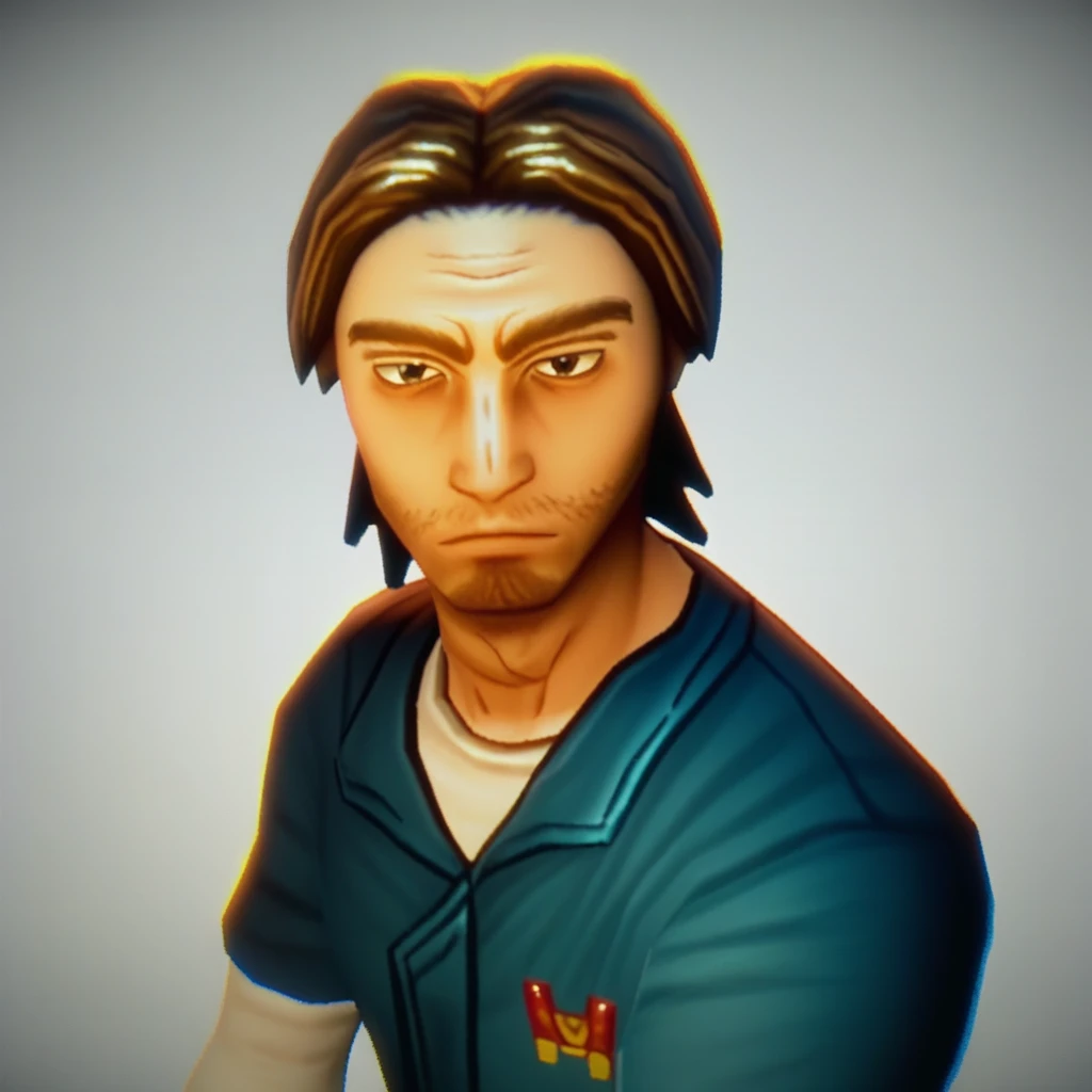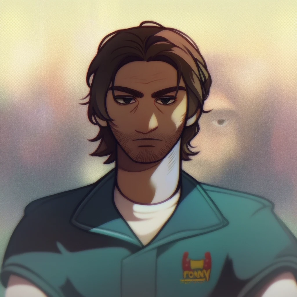 Jimmy, brown hair, facial hair, stubble, blue uniform, short over long sleeves