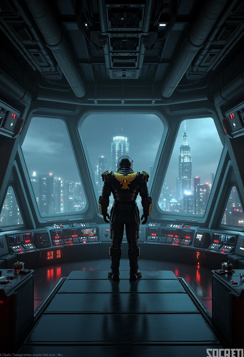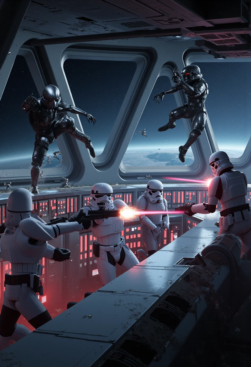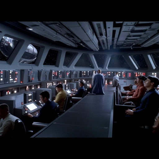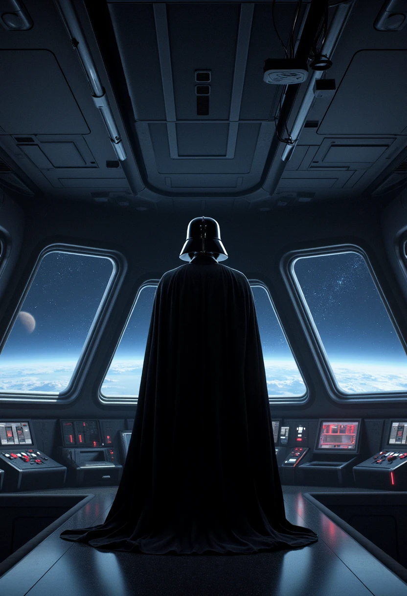 The lighting is meticulously crafted to create a dim, ominous environment, with subtle highlights on key elements like the control panels and the floor's reflective surfaces. The model also includes details like recessed lighting along the floors and walls, adding to the sense of depth and realism. The overall color palette is a mix of cold greys, blacks, and metallic silvers, enhancing the austere and intimidating atmosphere of the bridge. This backdrop is ideal for recreating scenes of power and authority, providing a perfect setting for characters like Imperial officers, Stormtroopers, or Darth Vader himself.