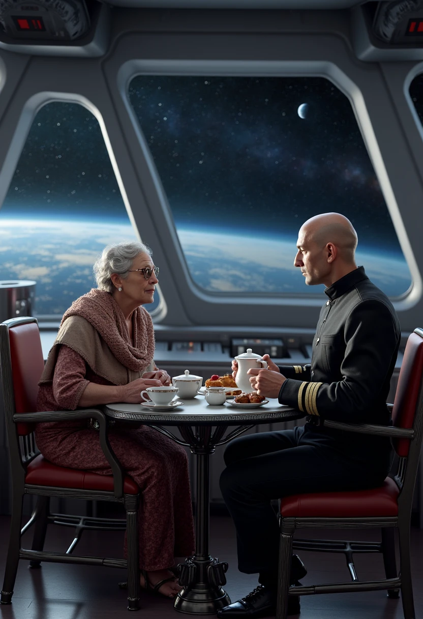 The model of the Main Bridge of a Star Destroyer is designed as an immersive thematic backdrop, capturing the iconic and imposing atmosphere of the Imperial command center. The backdrop features a large, angular layout with sleek metallic walls and floors, dominated by a central command area with advanced control panels, holographic displays, and high-tech consoles. The focal point of the model is the large, triangular observation windows at the rear, offering a panoramic view of the vastness of space, complete with twinkling stars and distant celestial bodies.