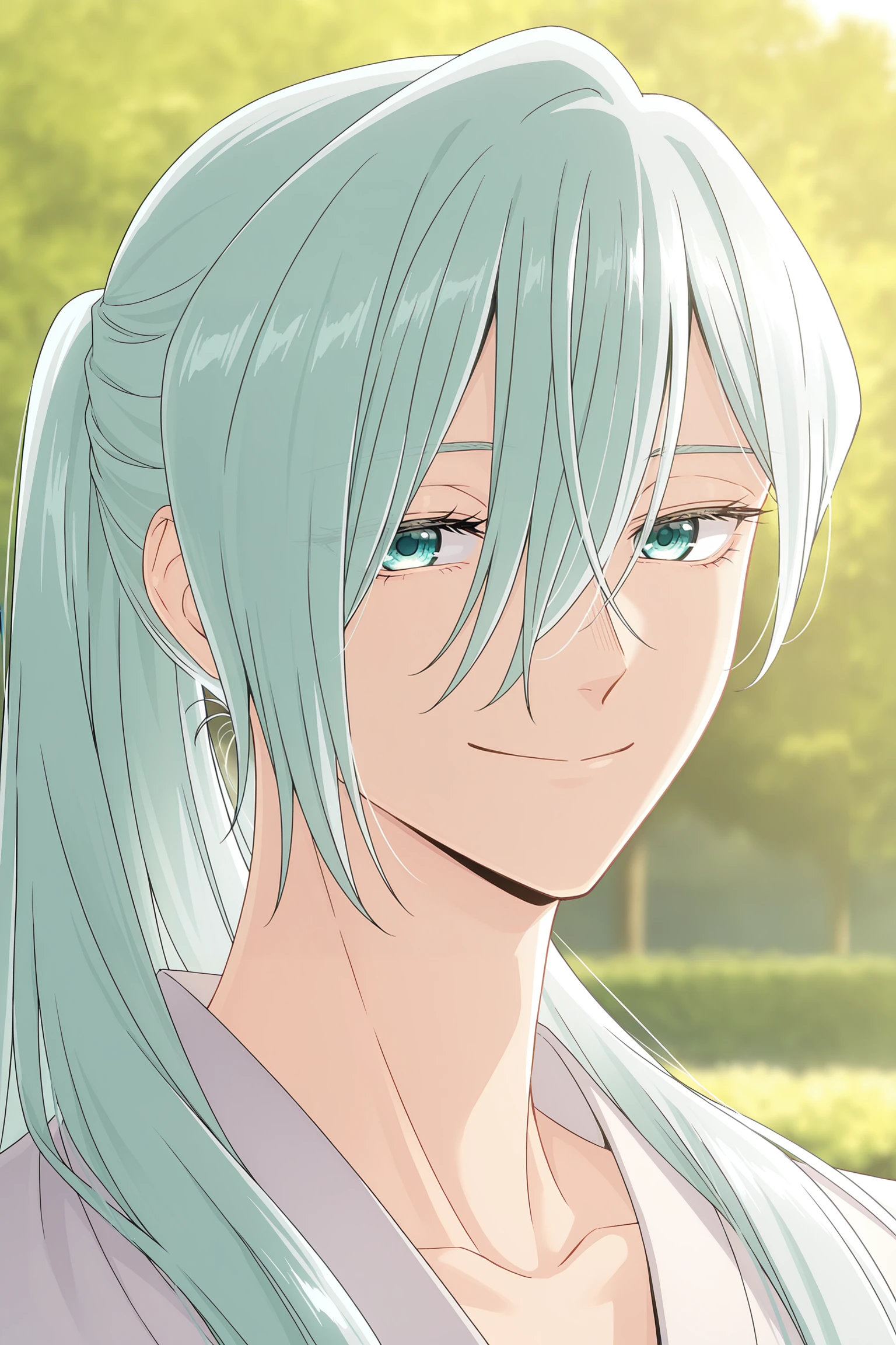light green hair,long bangs,long hair,mole,white hair,green eyes,Clothes(服装):