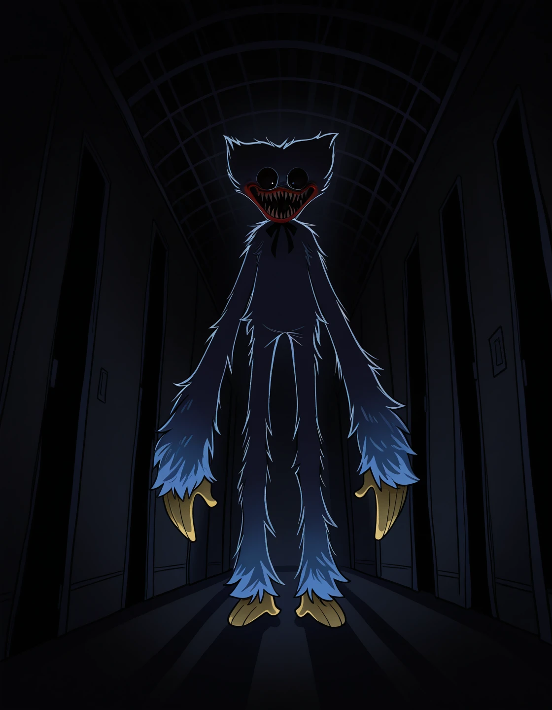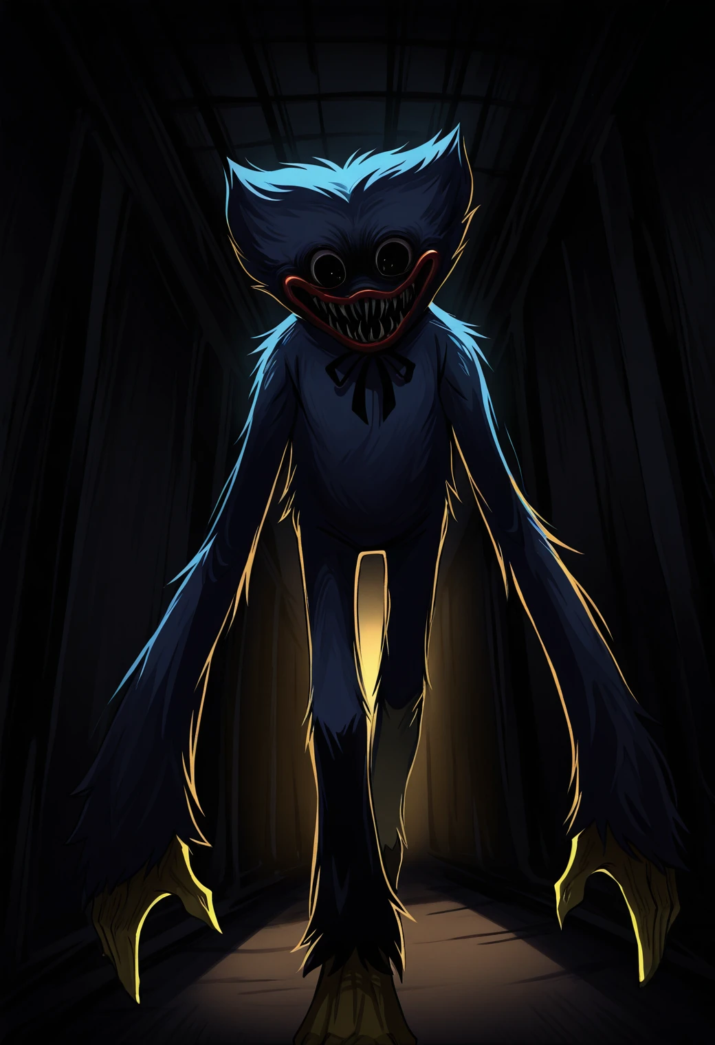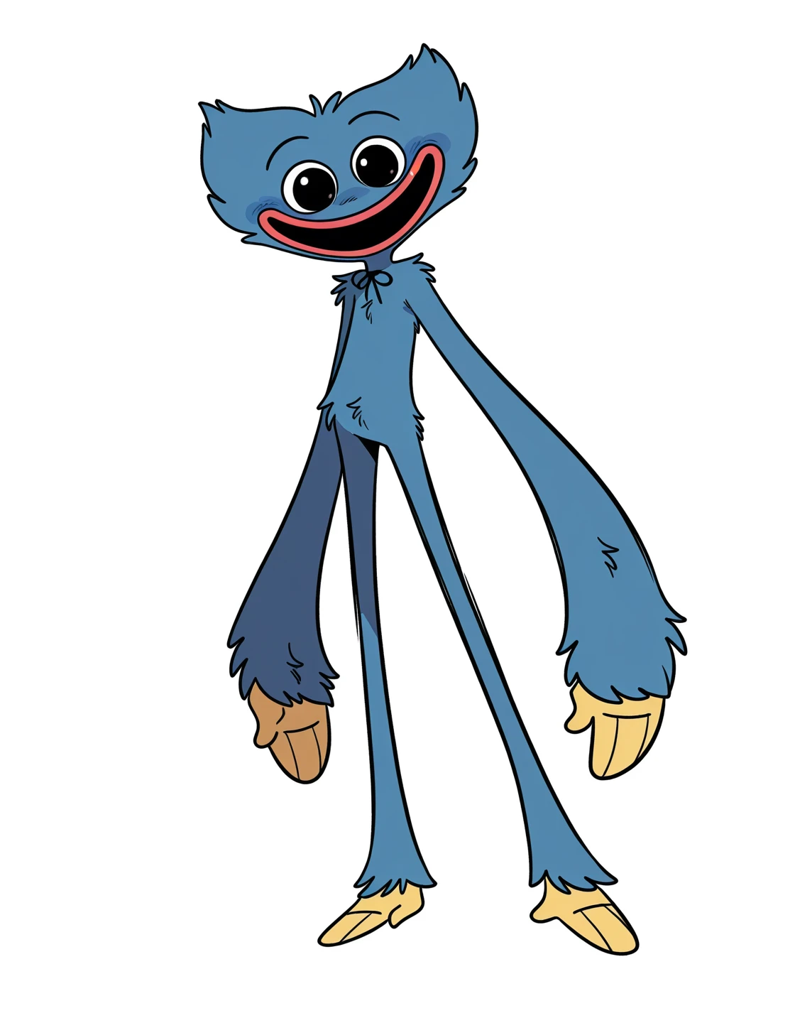 Prompts: huggy_wuggy, long limbs, blue body, sharp teeth, smile