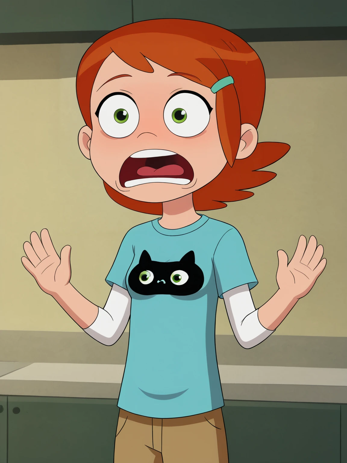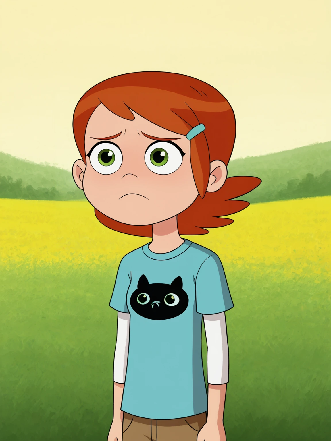 gwen,raglan sleeves,orange hair,hairclip,1girl