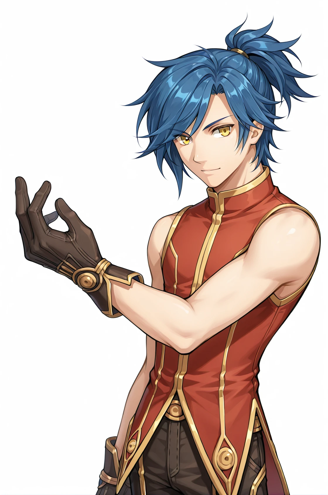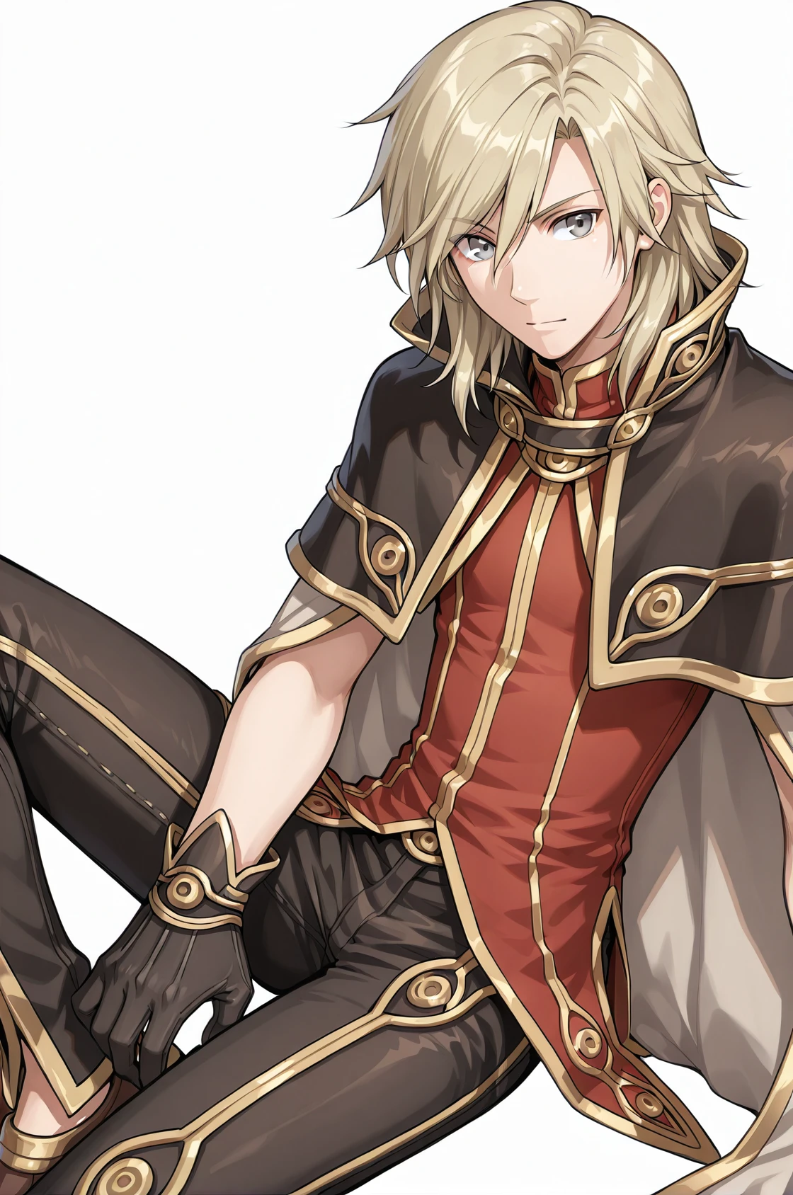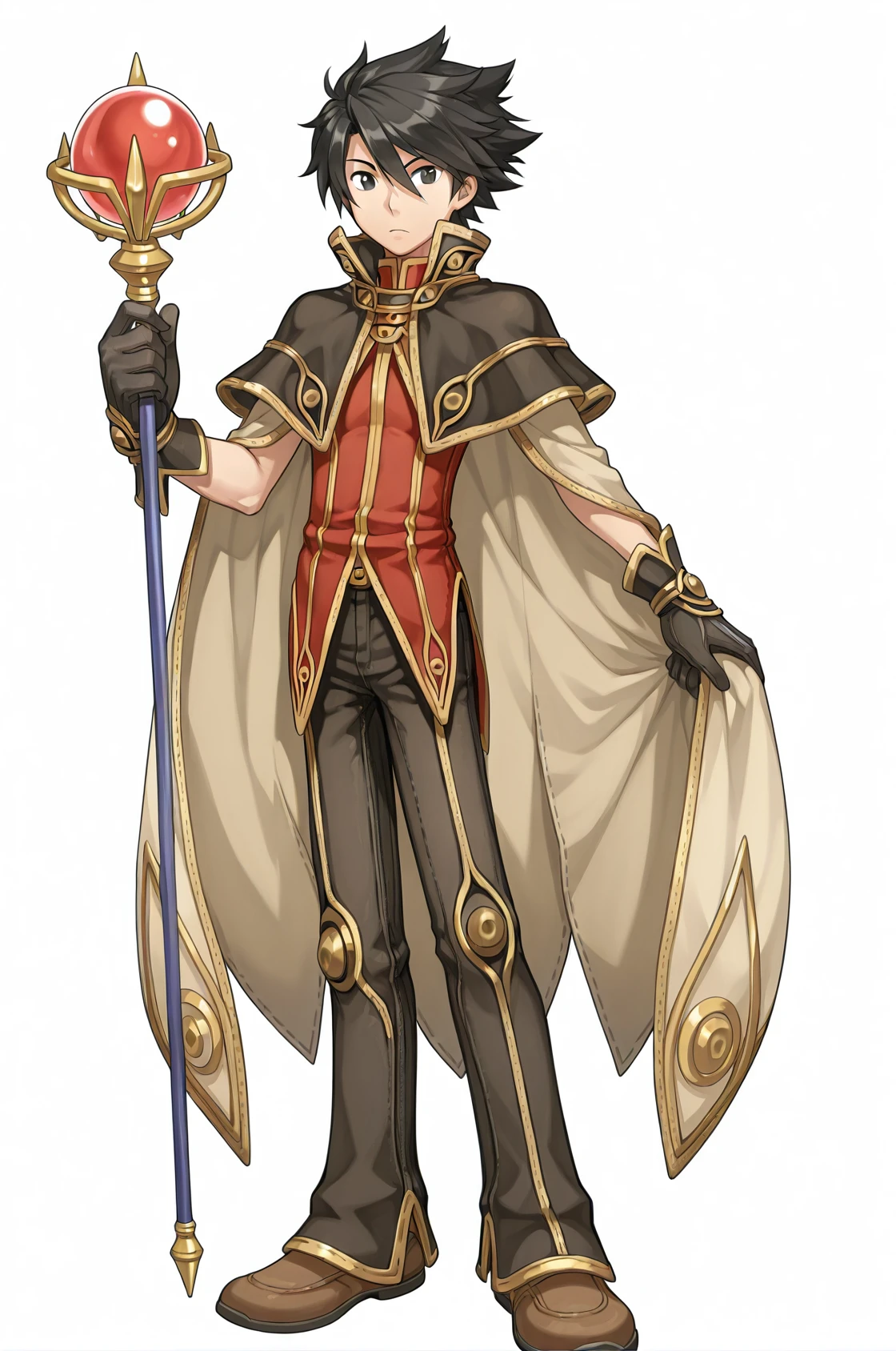 wizROMale, black gloves, cape, black capelet, sleeveless, red shirt, black pants, shoes