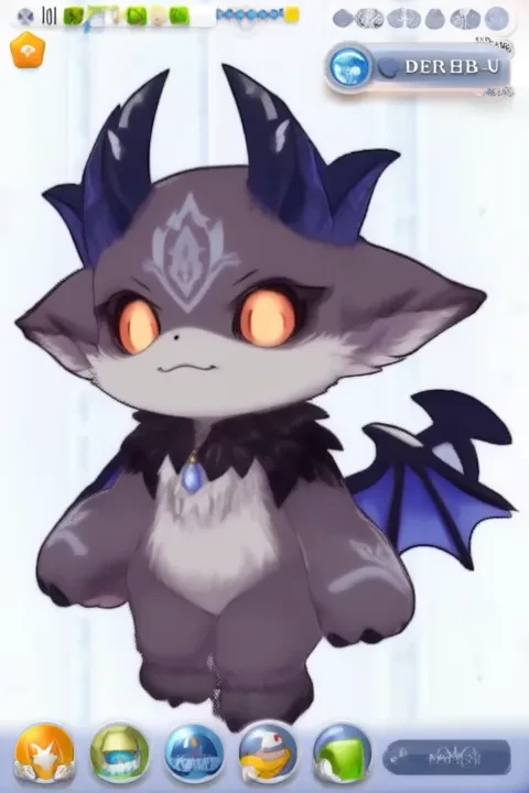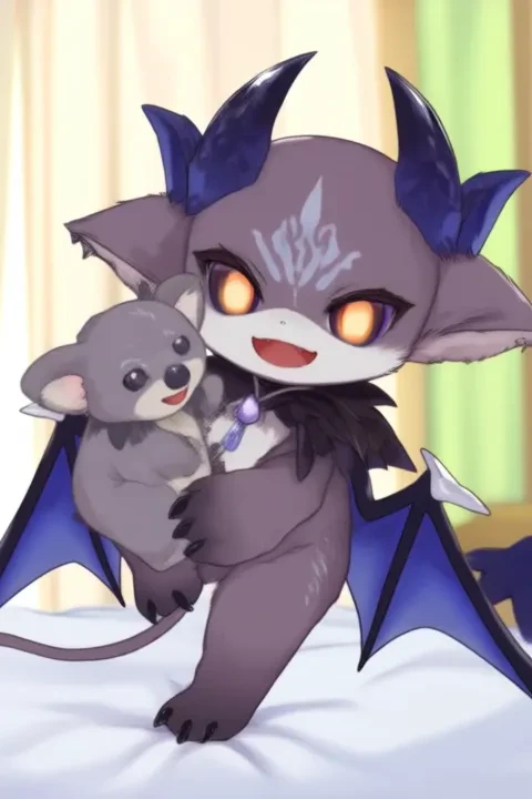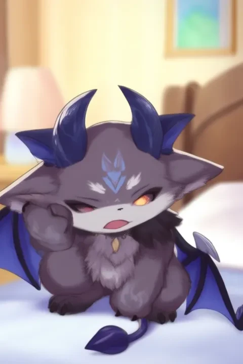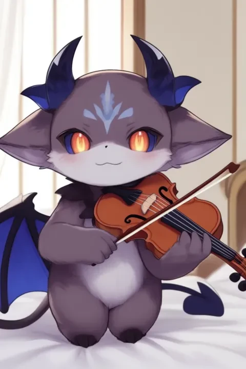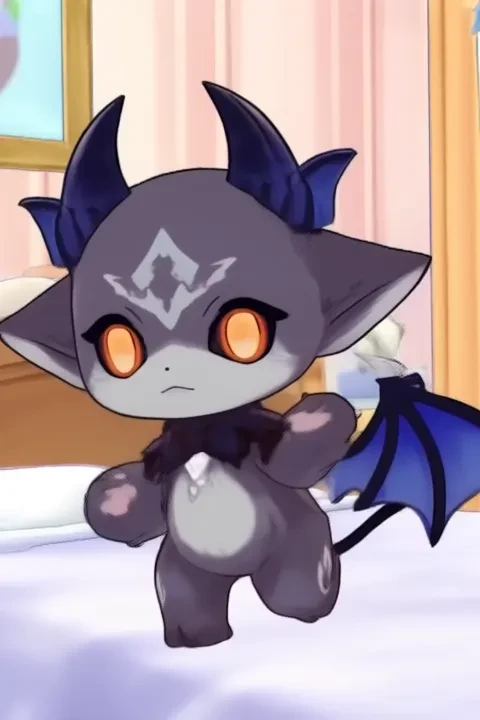 sample prompt:Debidebi debiru, anime-style animal. The image features a cute, anthropomorphic creature with a dark gray fur coat. The character has large, expressive orange eyes that stand out prominently against its fur. Its ears are pointed and have a darker shade of gray, with blue accents on the tips. The character's tail is long and curved, with a similar dark gray color, (she is dancing:3.0), (chibi Nendoroid:3.0) in bedroom.