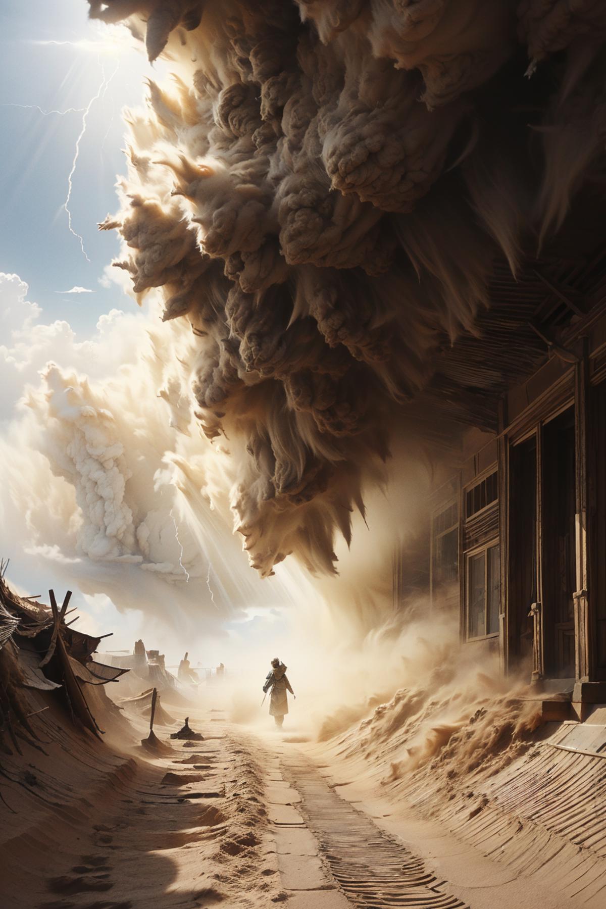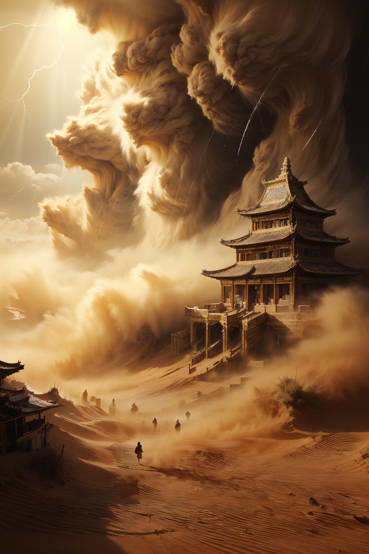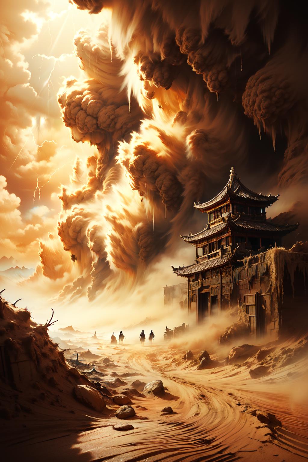 This is an apocalyptic sandstorm style LORA. If you want to paint this scene, don't miss it.