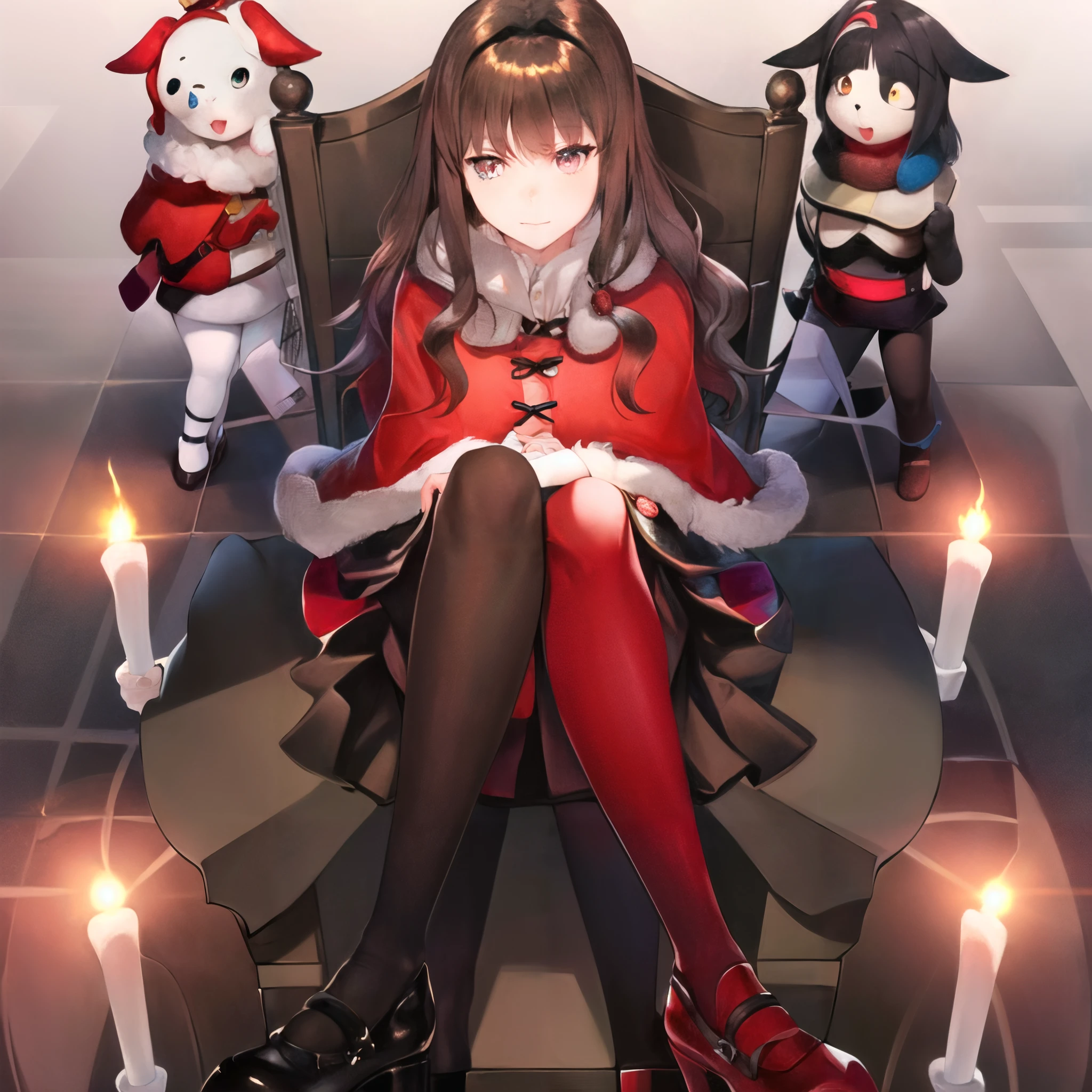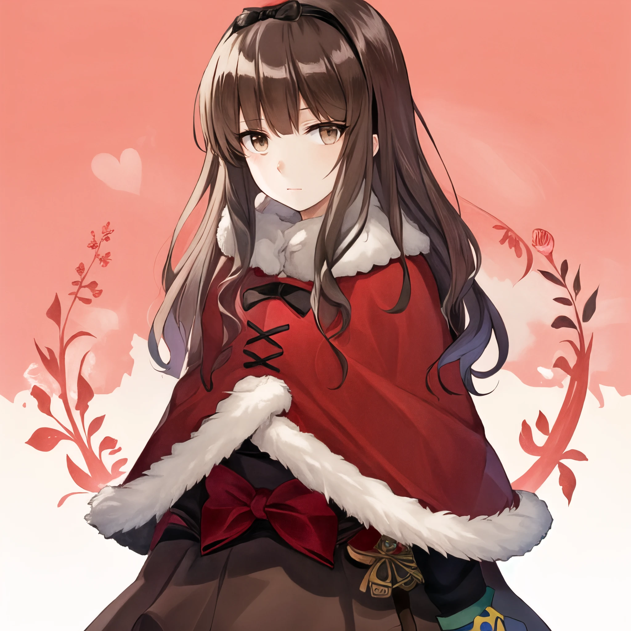 Trigger Words: Aria, brown eyes, brown hair, fur trim, hairband, skirt, capelet, red capelet,