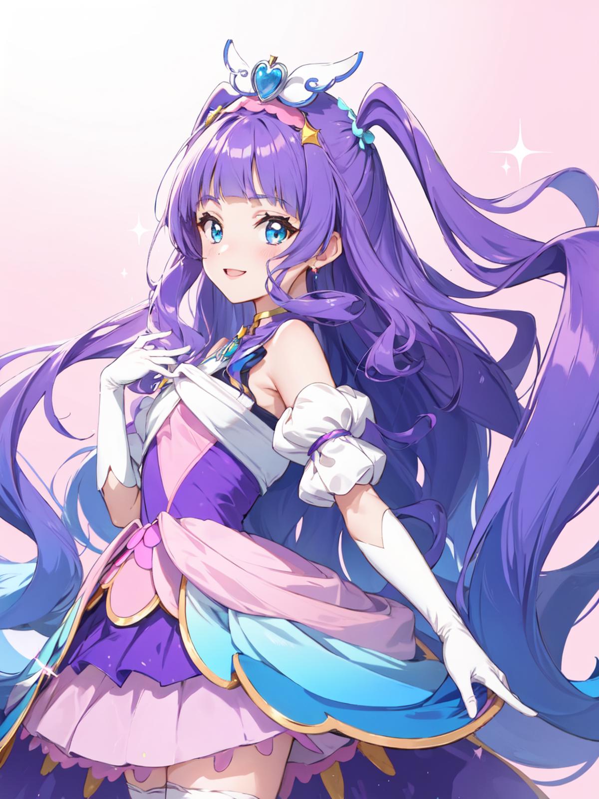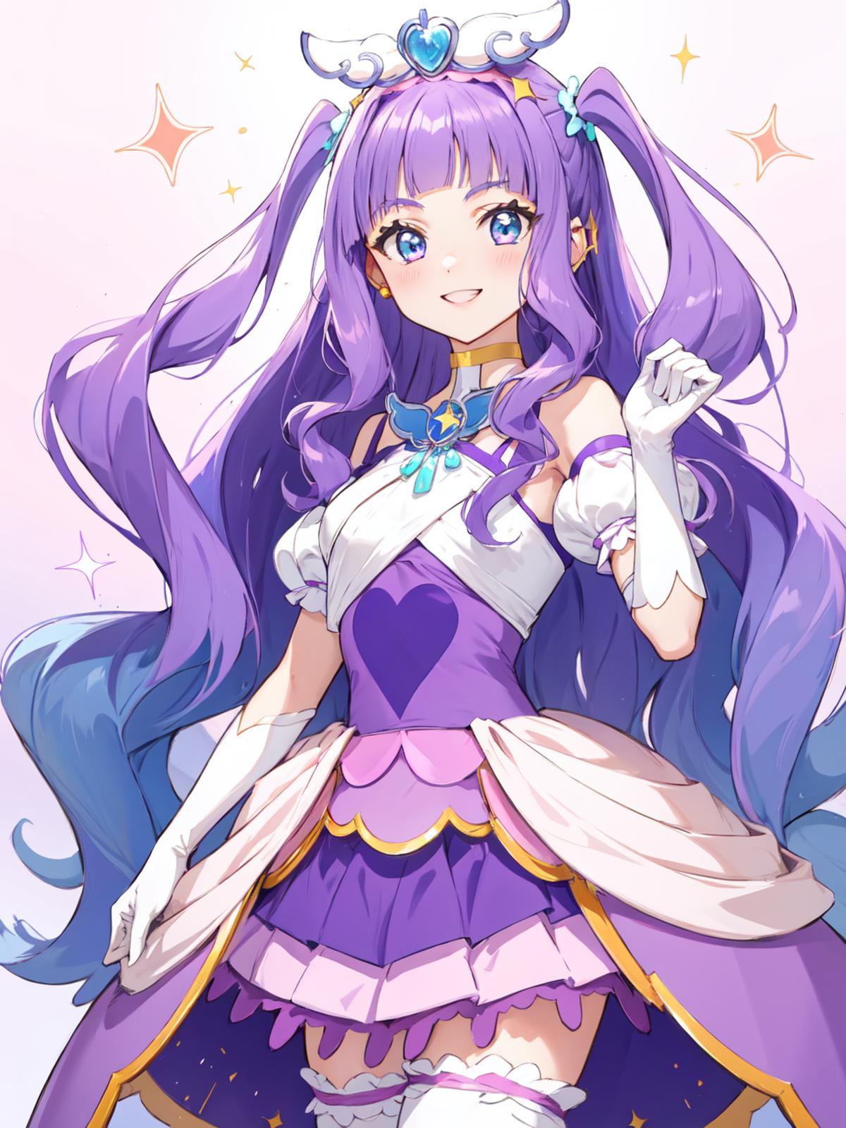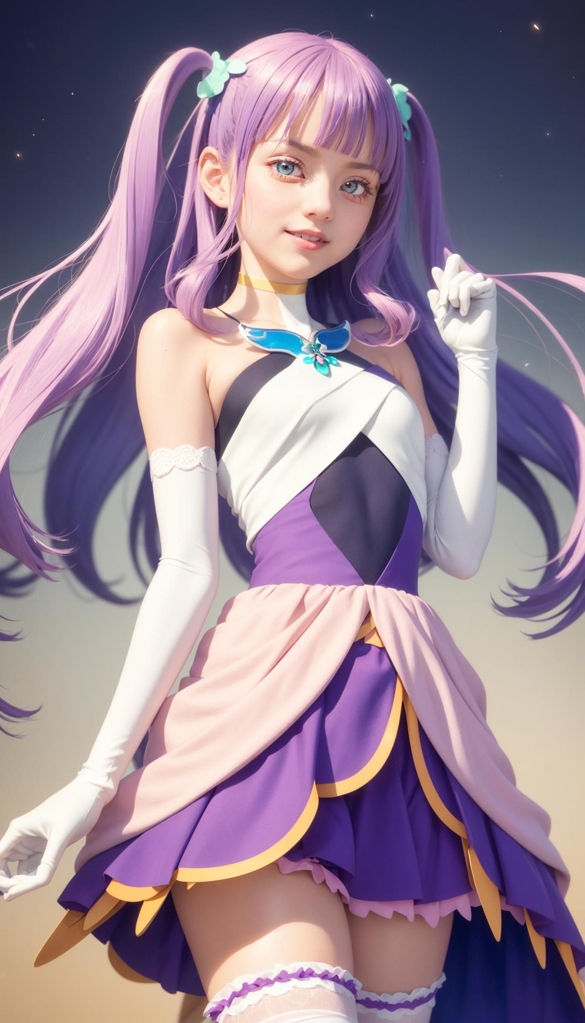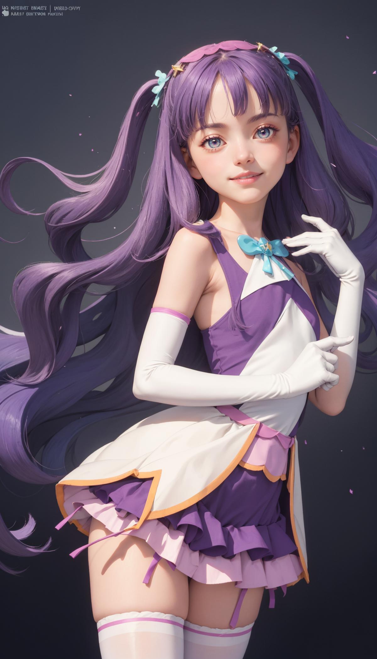 Recommend Tags: purple hair, two side up, hair ornament, elbow gloves, frilled thighhighs