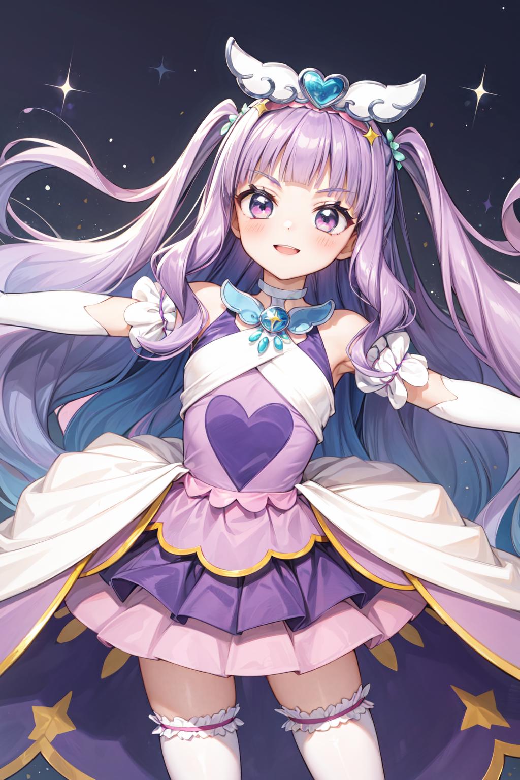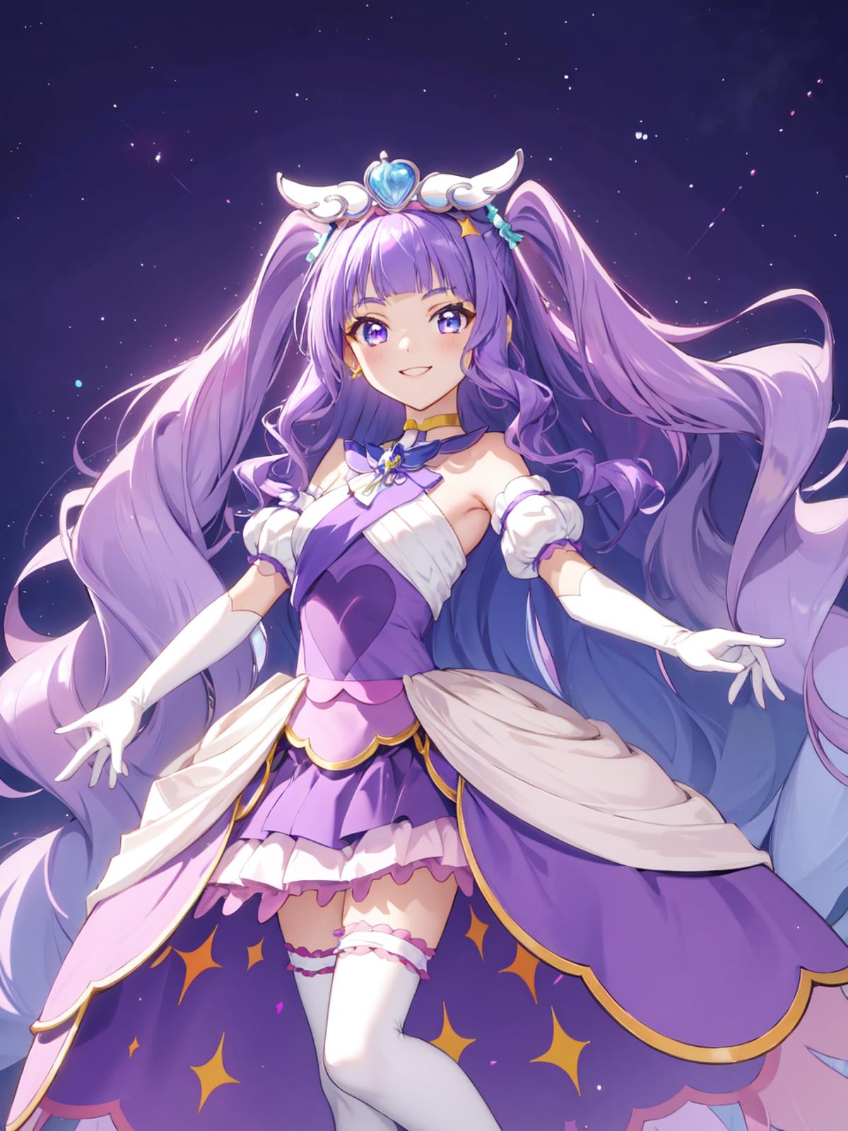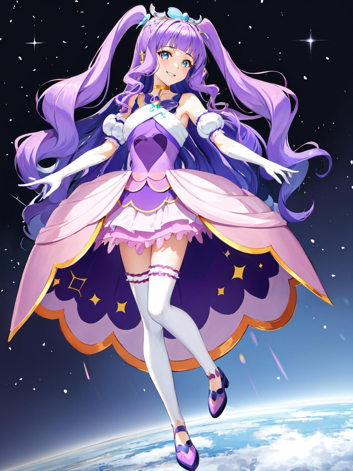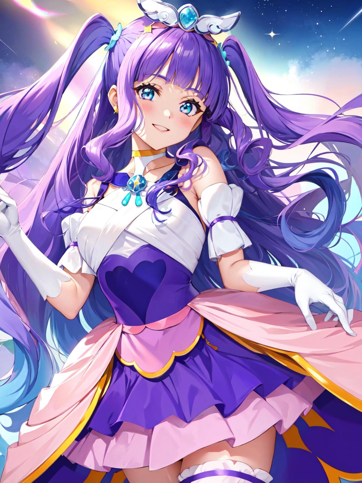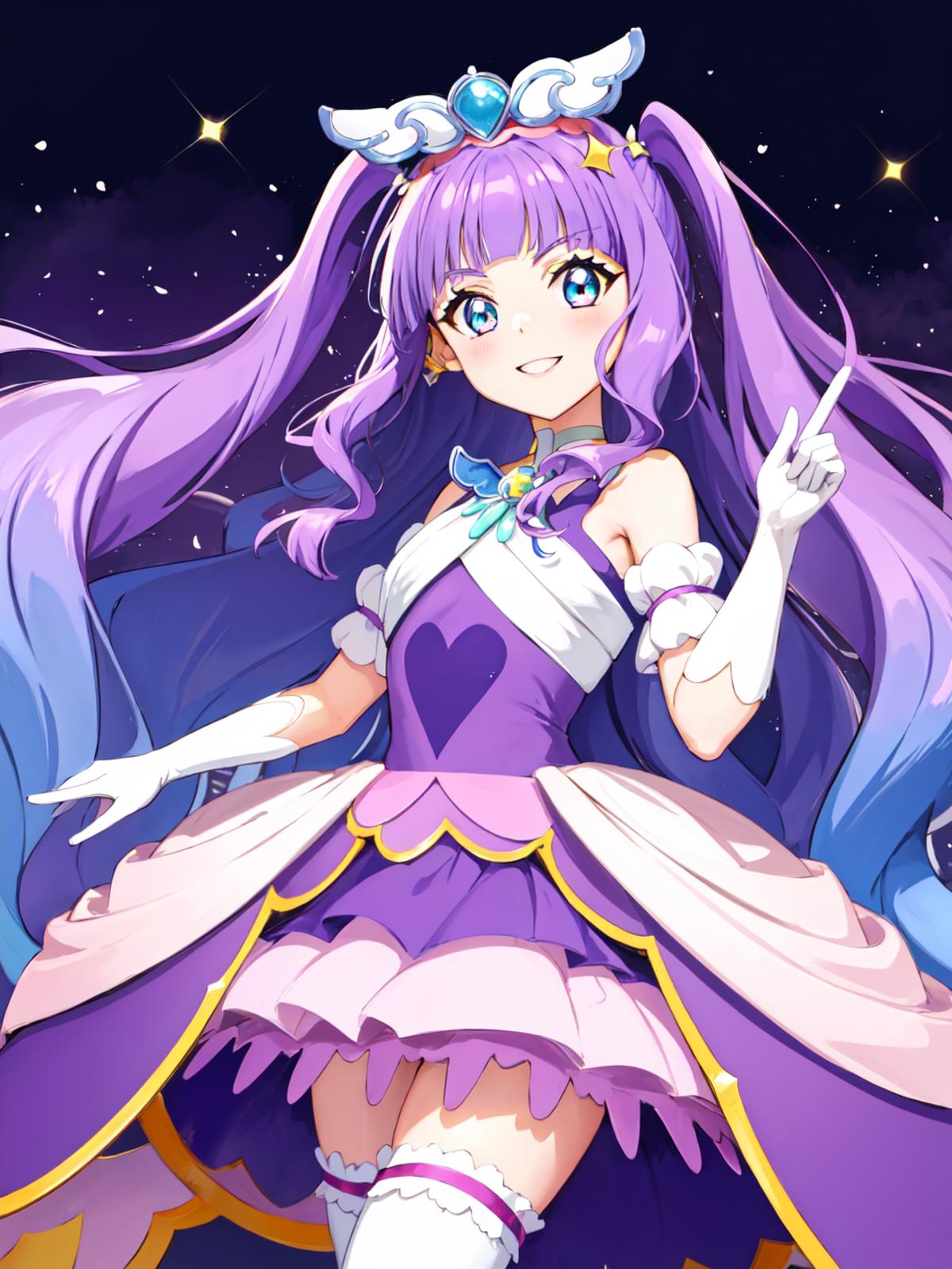 Recommend Tags: purple hair, two side up, hair ornament, elbow gloves, frilled thighhighs