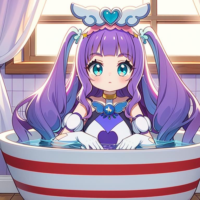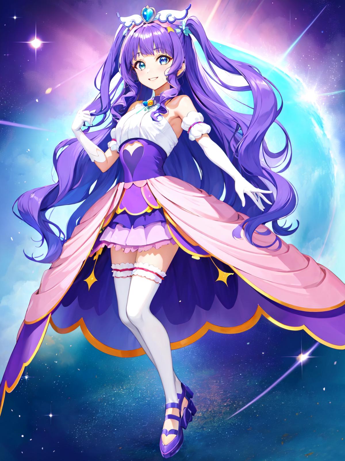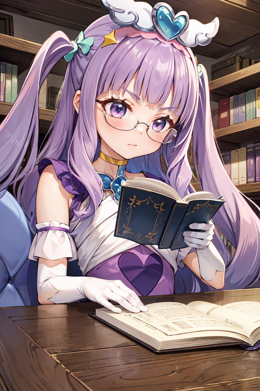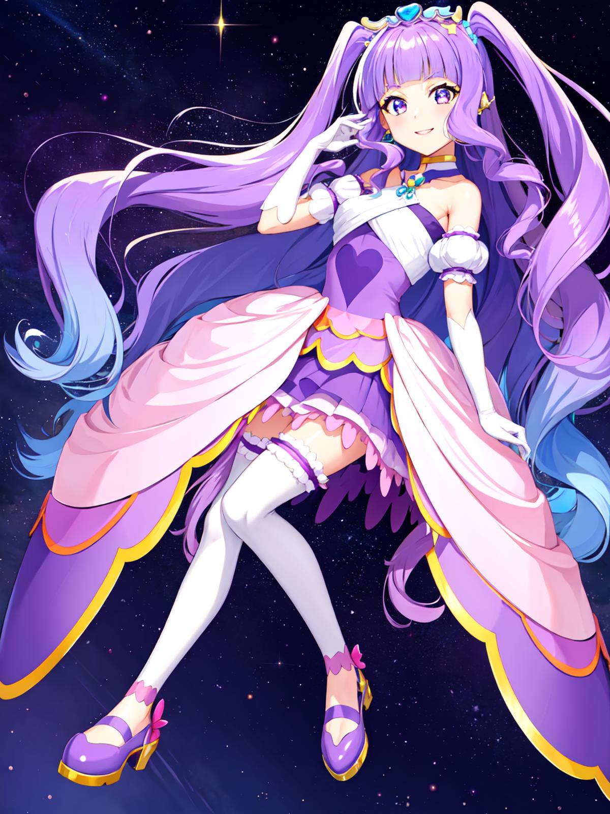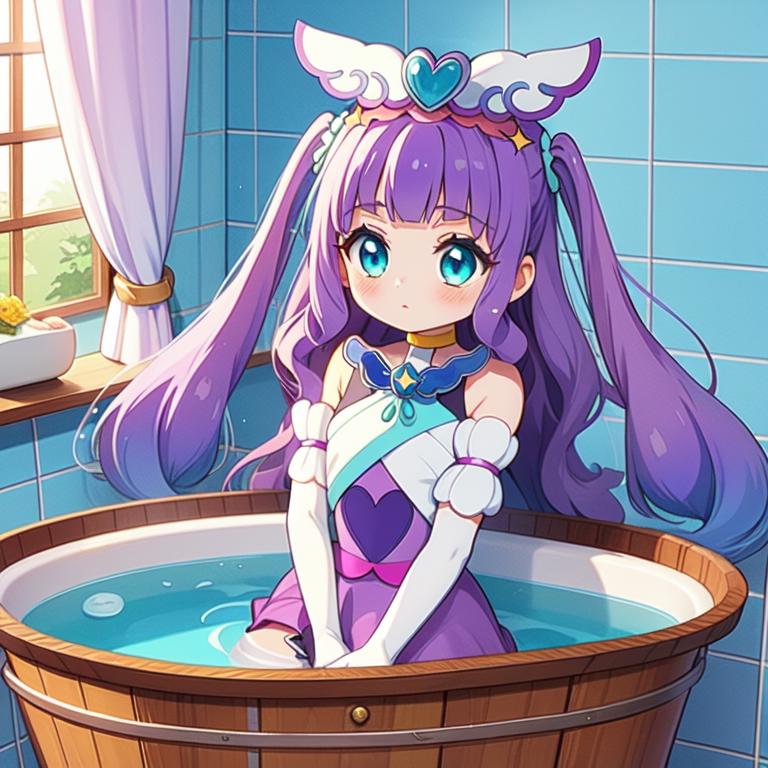 Recommend Tags: purple hair, two side up, hair ornament, elbow gloves, frilled thighhighs