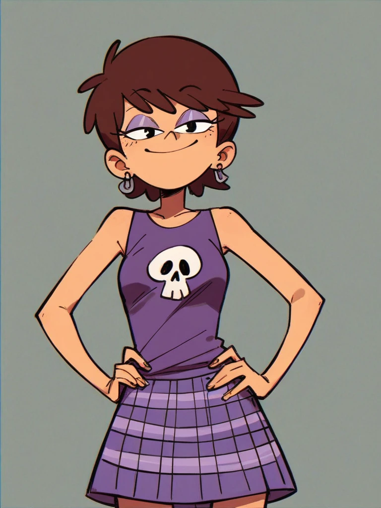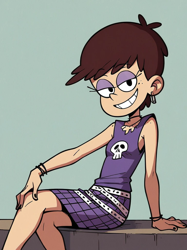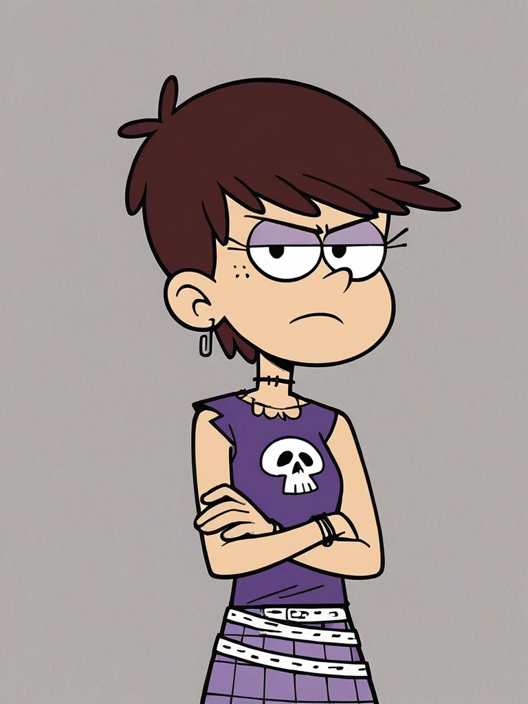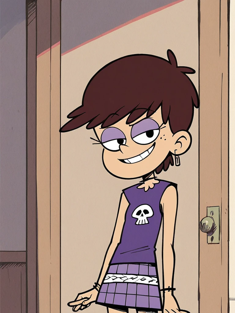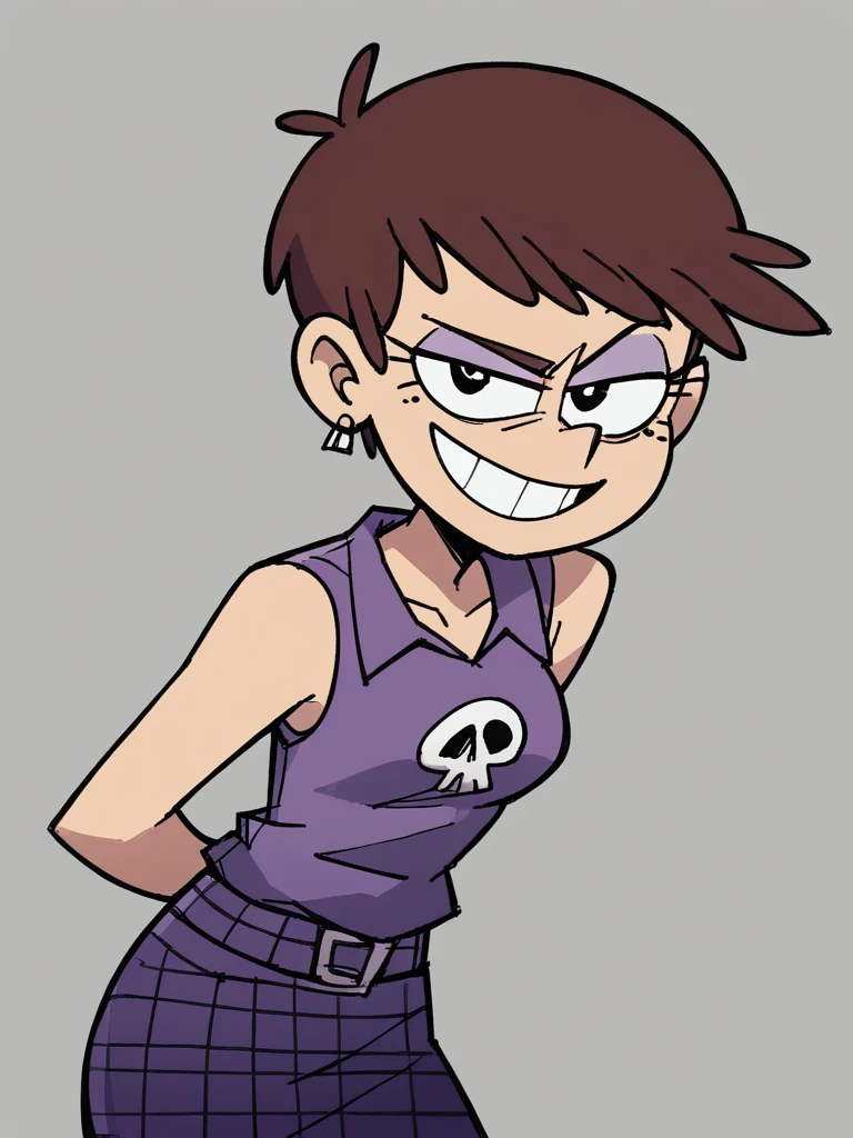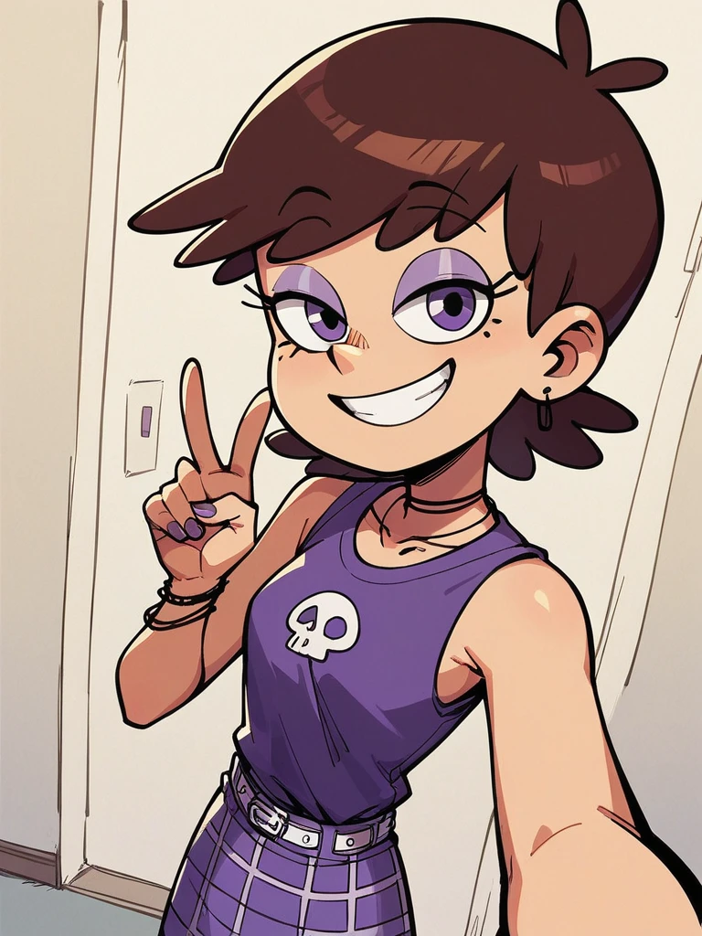 Keywords: Luna Loud, brown hair, short hair, purple eyeshadow, black eyes