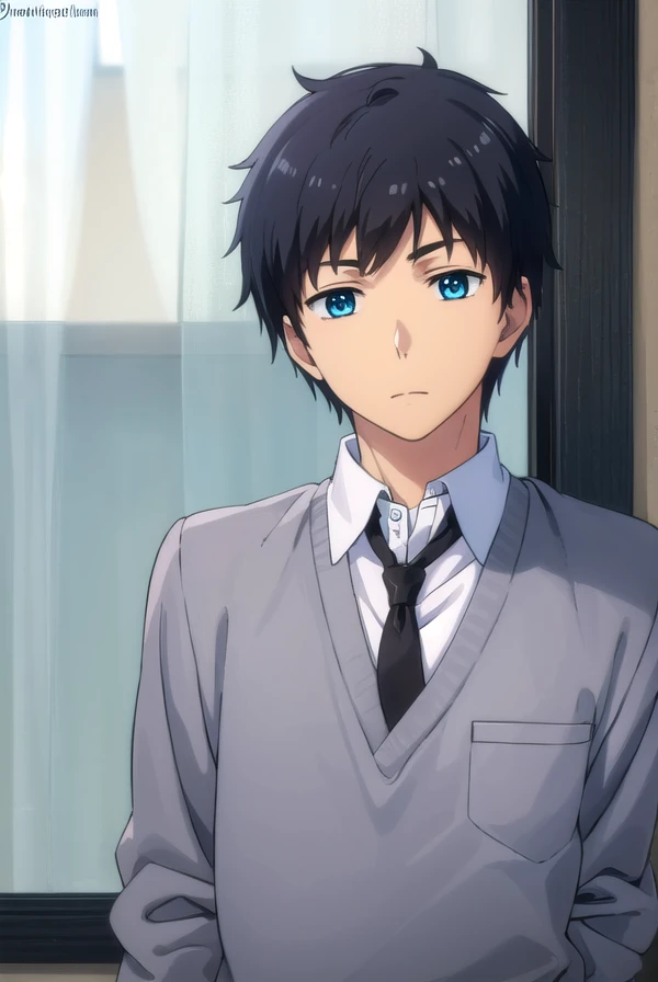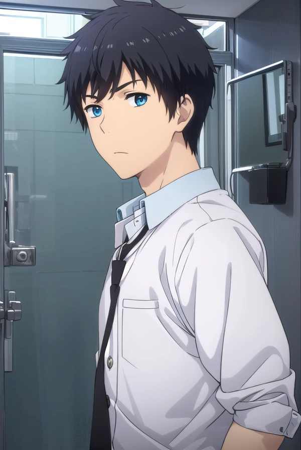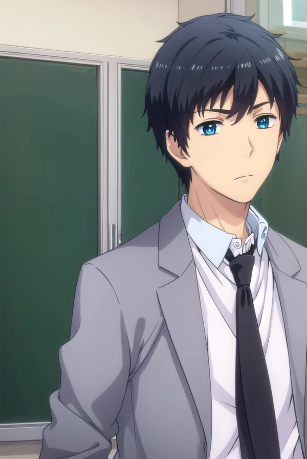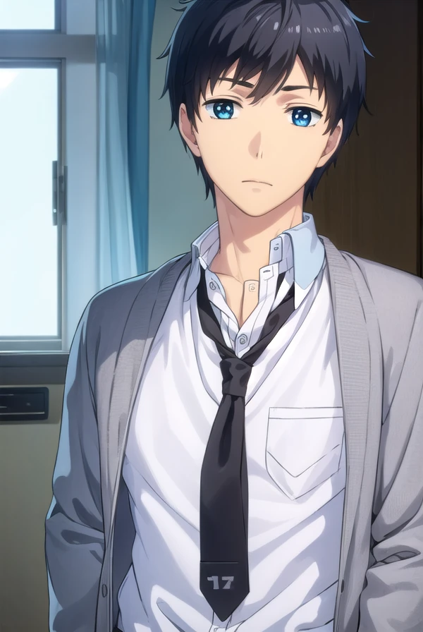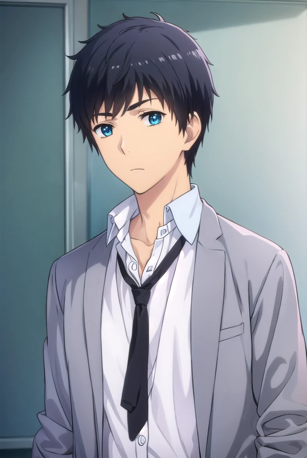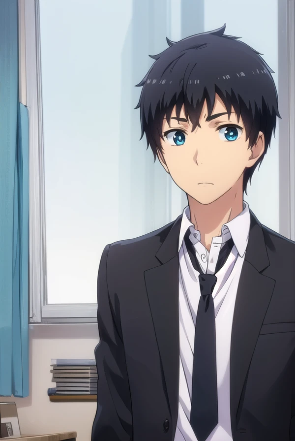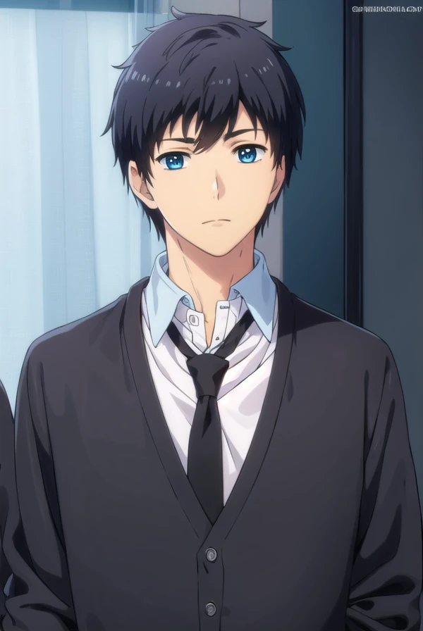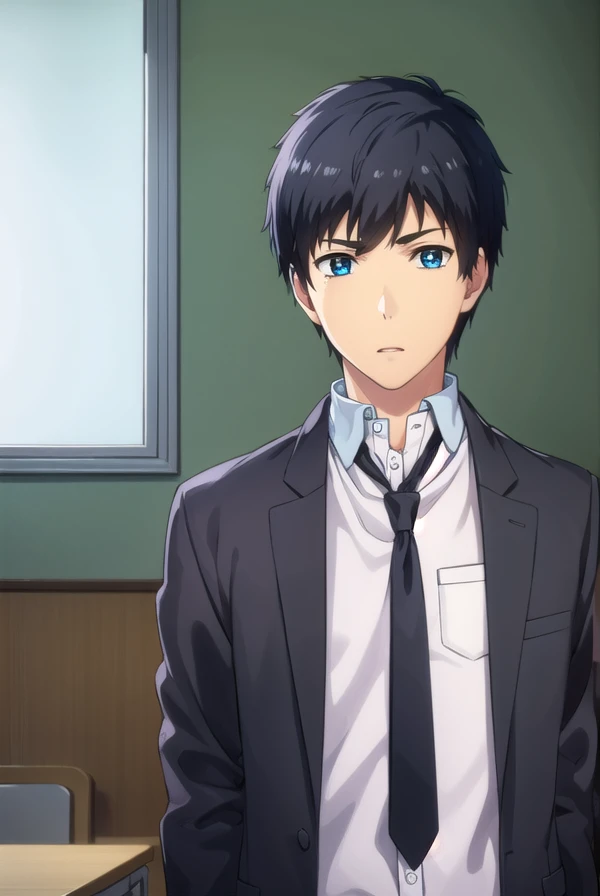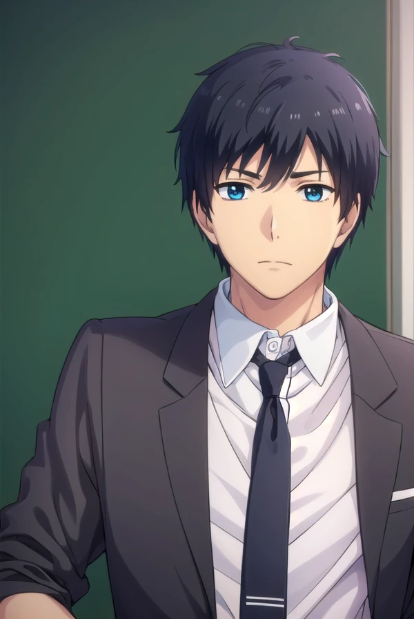 arata kaizaki, blue eyes, black hair, male focus,