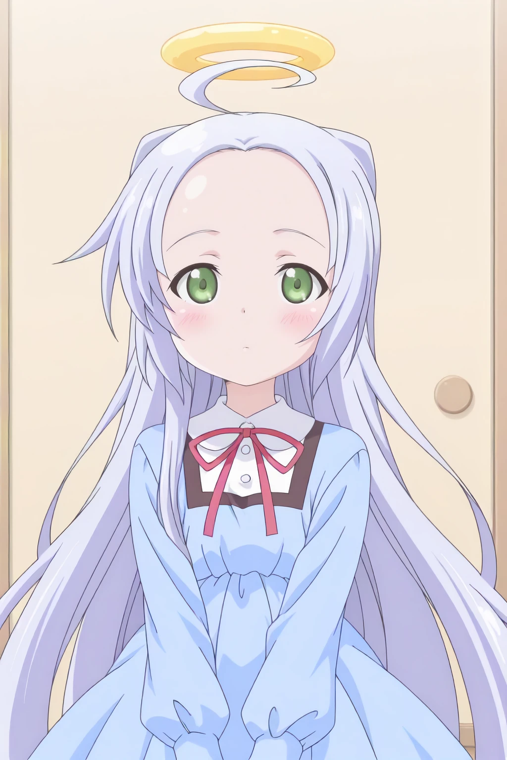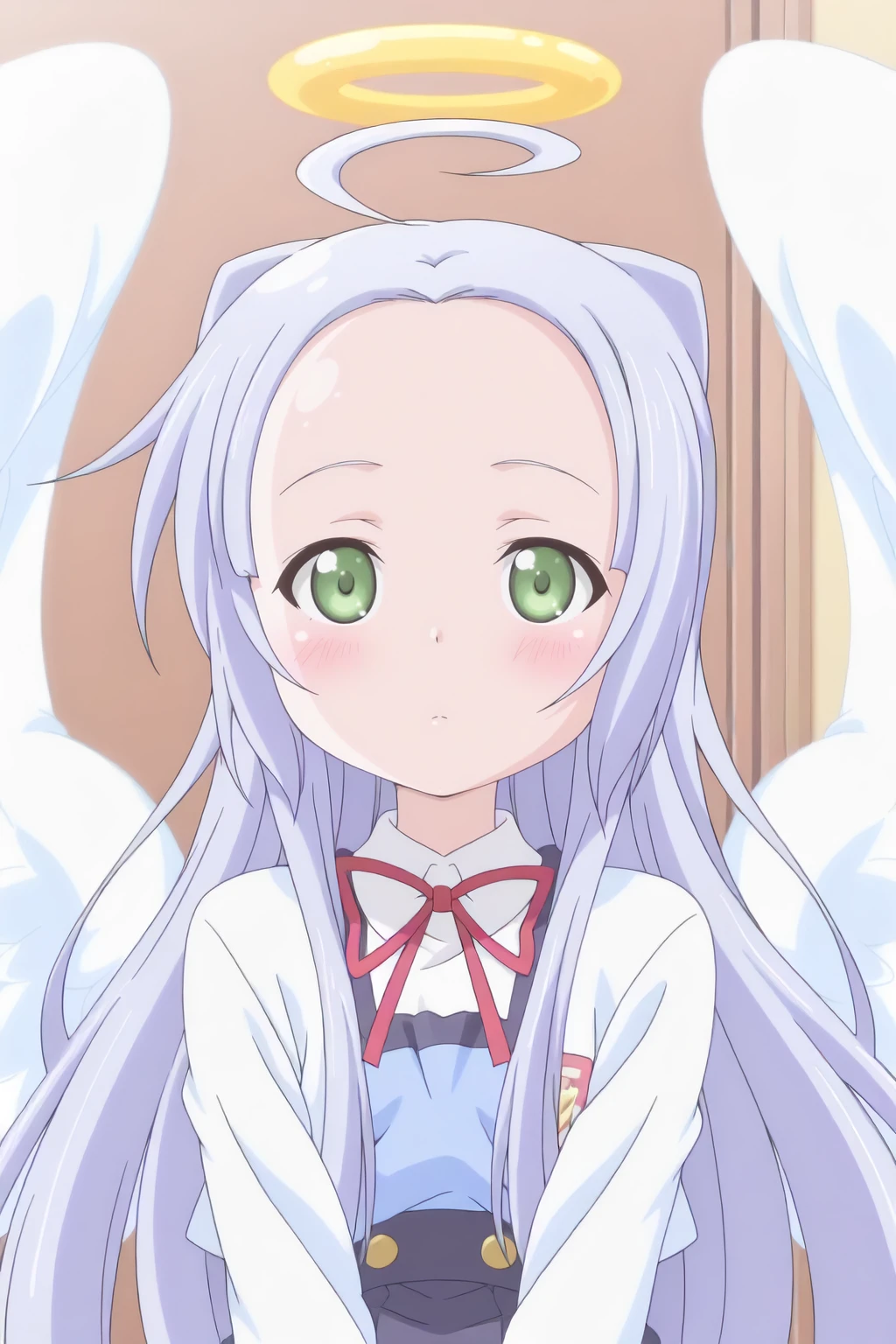 , ahoge, angel wings, halo, school uniform