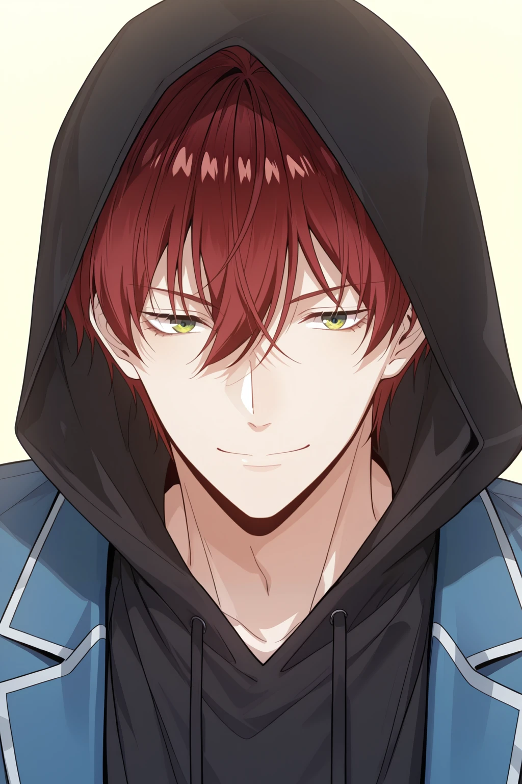 thanatos, thanatos_god_reaper, red hair, green eyes, hair between eyes, bangs