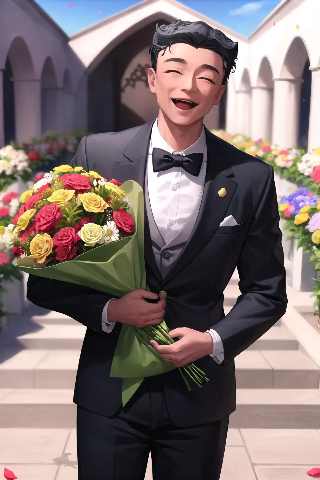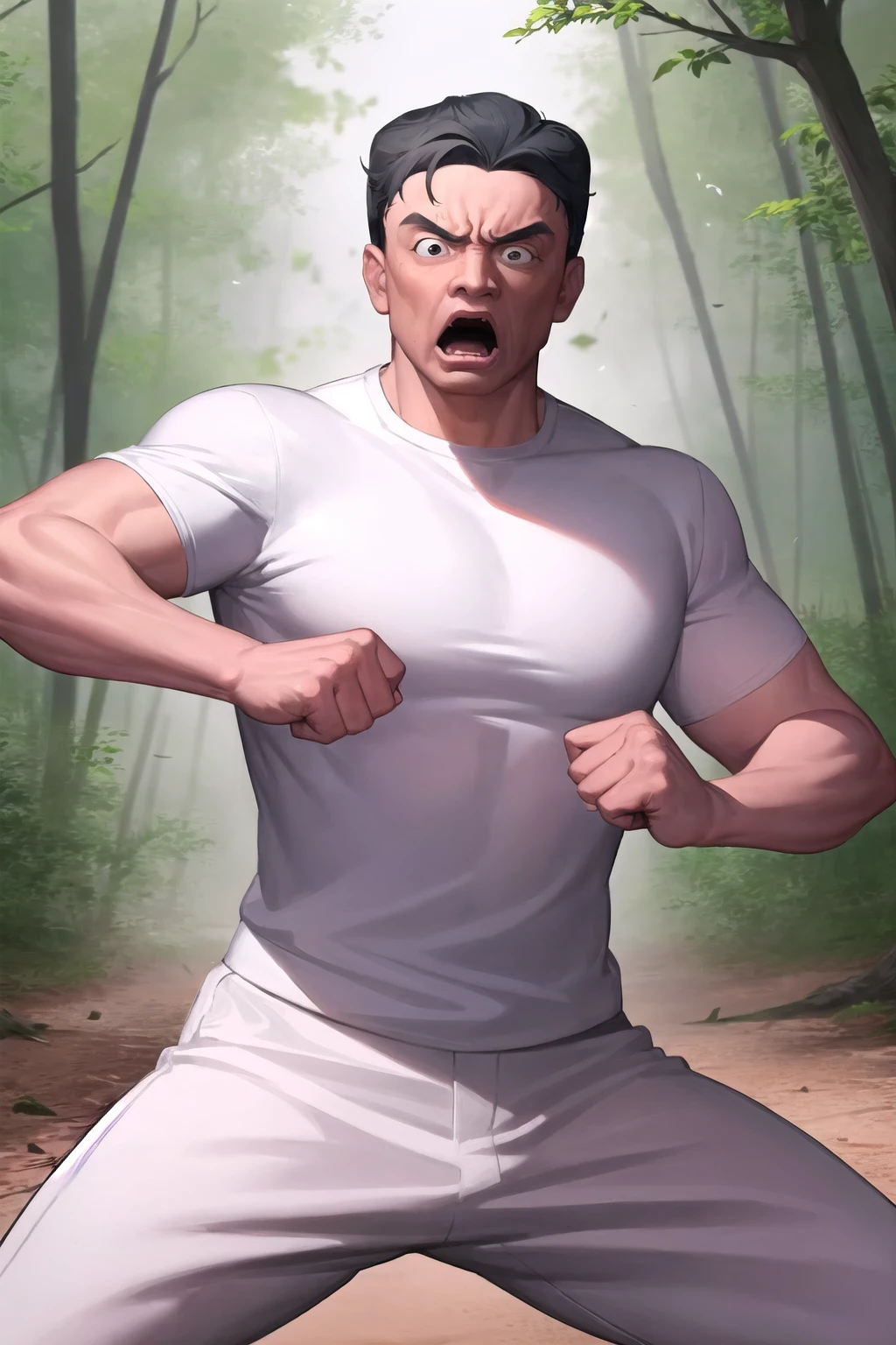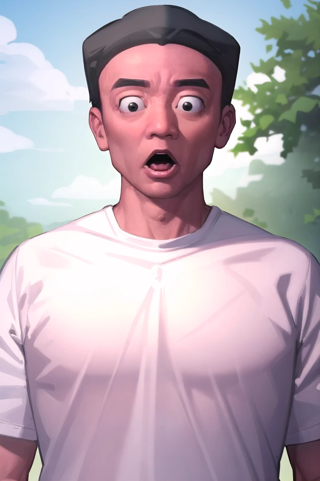 rifujin_ojisan, 1boy, black hair, very short hair, black eyes