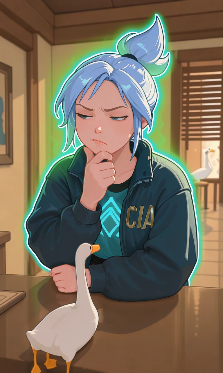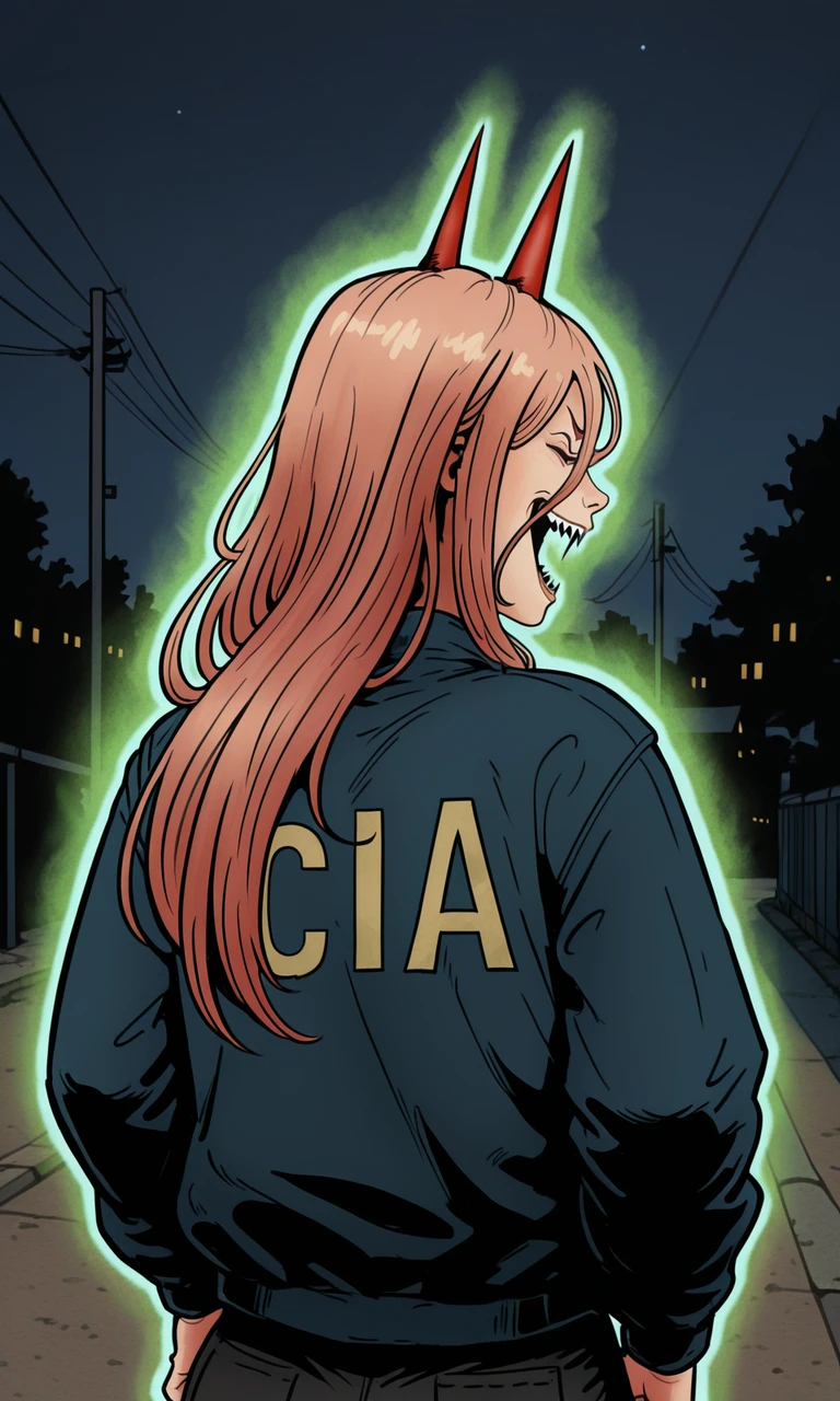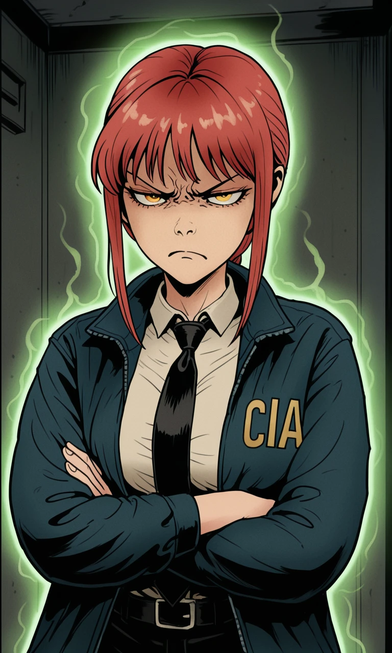 Prompt: cia jacket, green aura, glowing