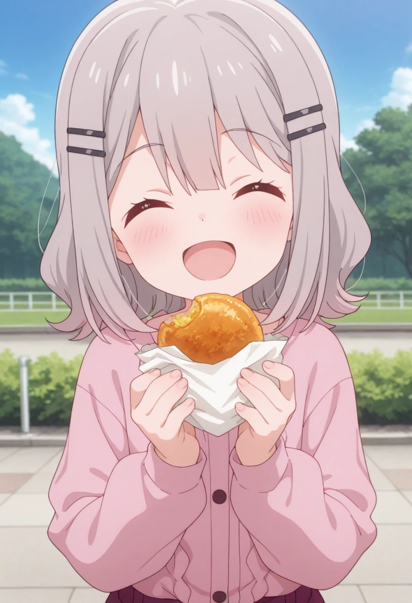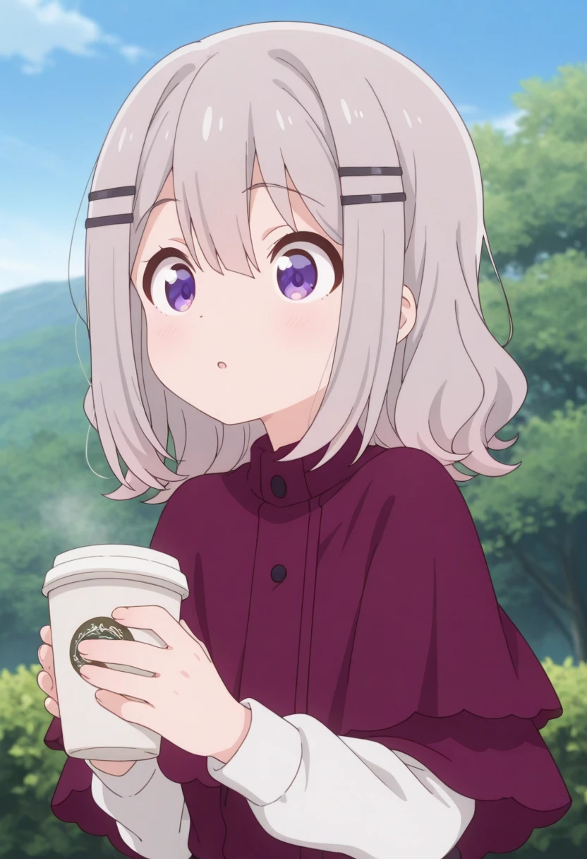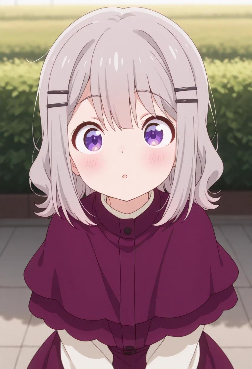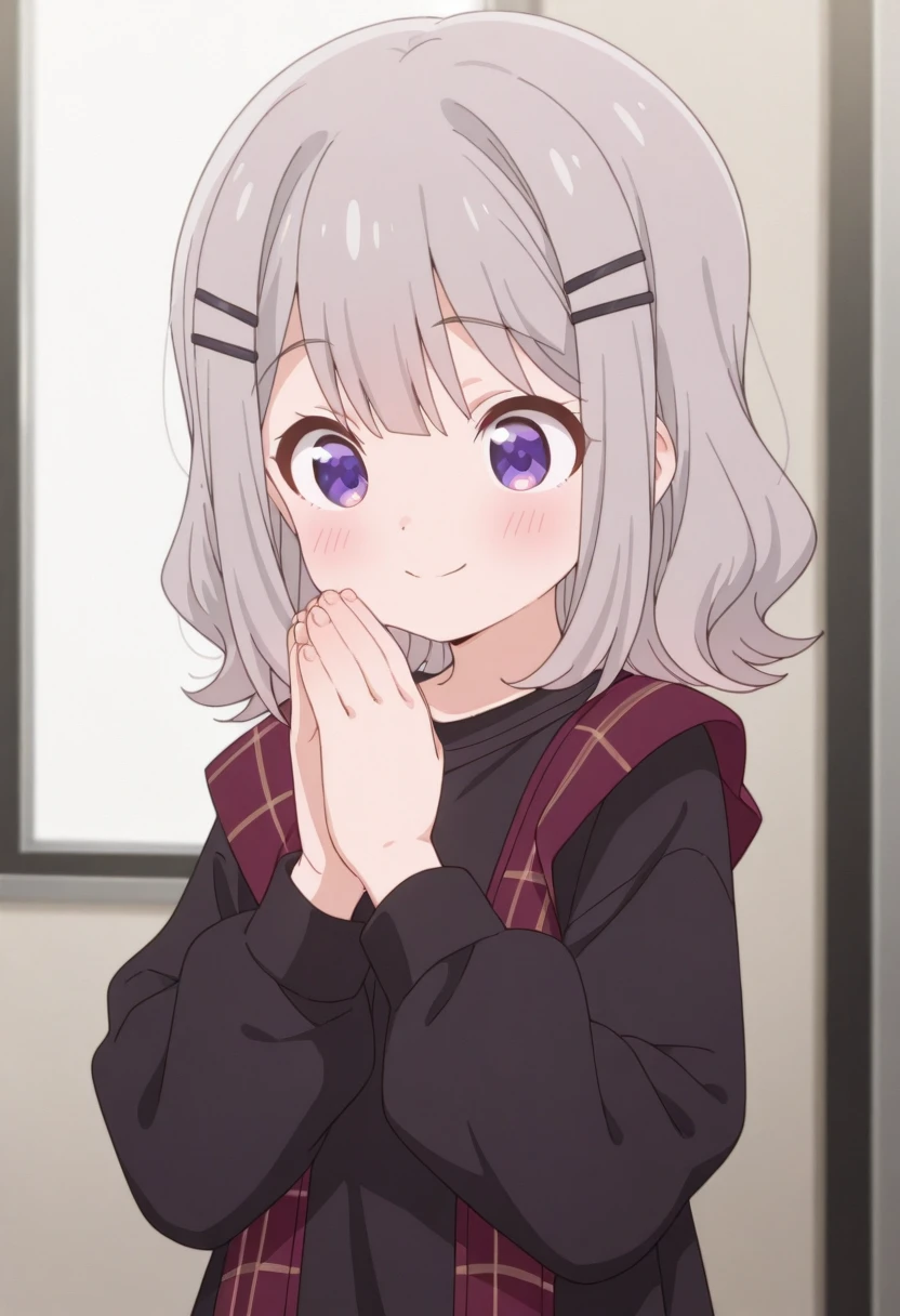 Trigger Words: ninomiya aiko, grey hair, purple eyes, hair ornament, hairclip