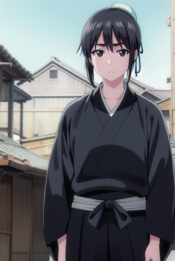 long sleeves, japanese clothes, kimono, haori, black kimono, hakama, black hakama,