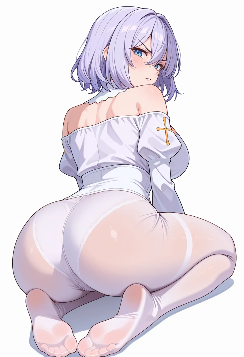 nagomis1_cnr, 1girl, light purple hair, hair between eyes, blue eyes,large breasts,👗Default Outfit