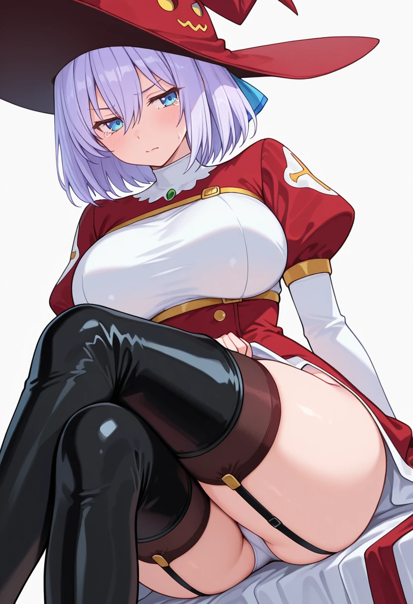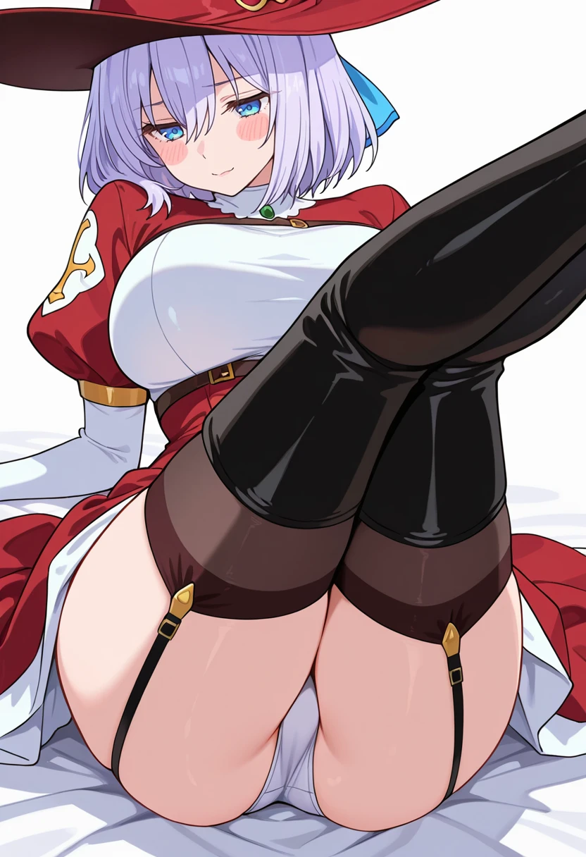 witch hat,red dress, white dress, two-tone dress,white leotard, puffy sleeves,garter straps,black thighhighs,thigh boots, Explanation and notes below👇