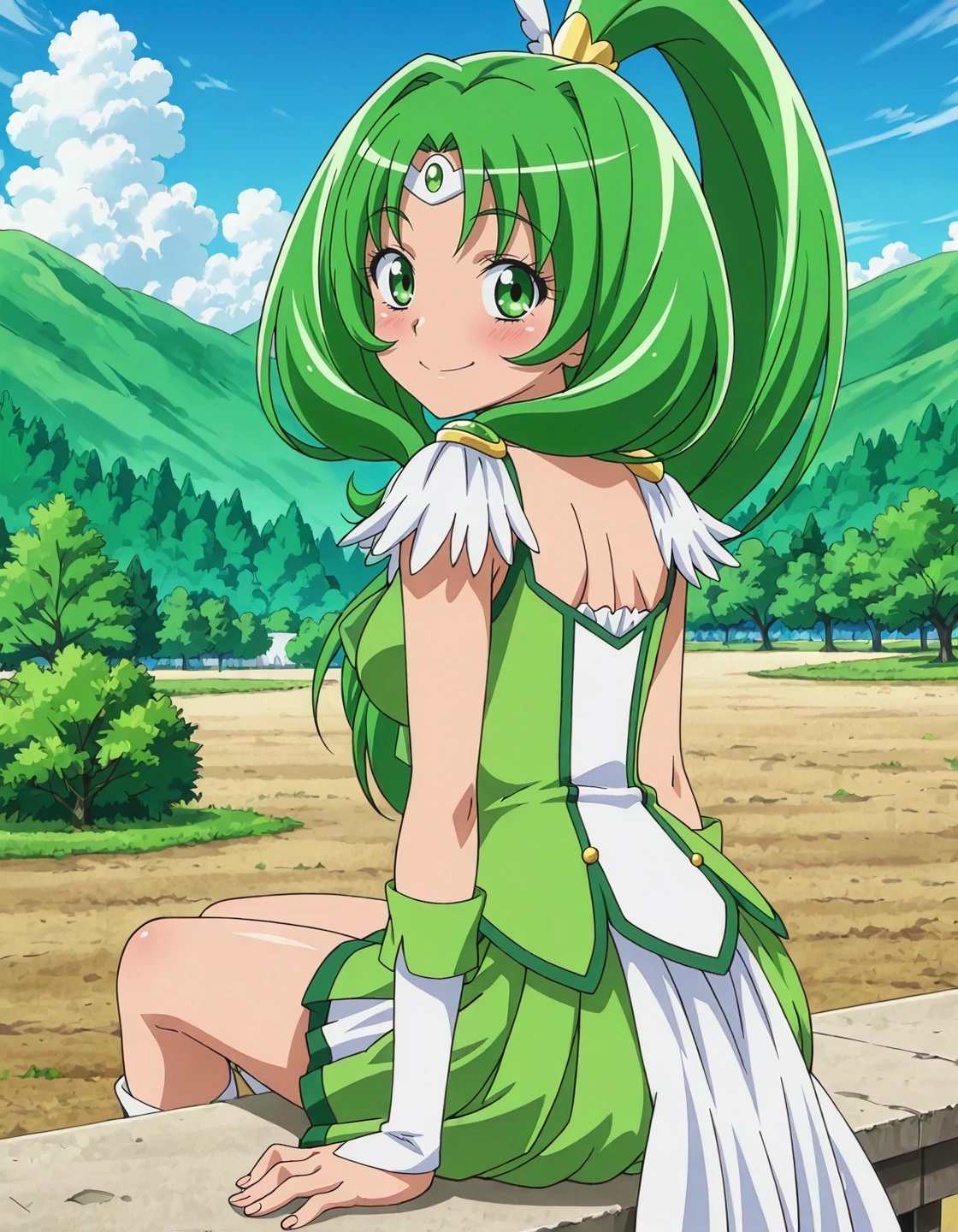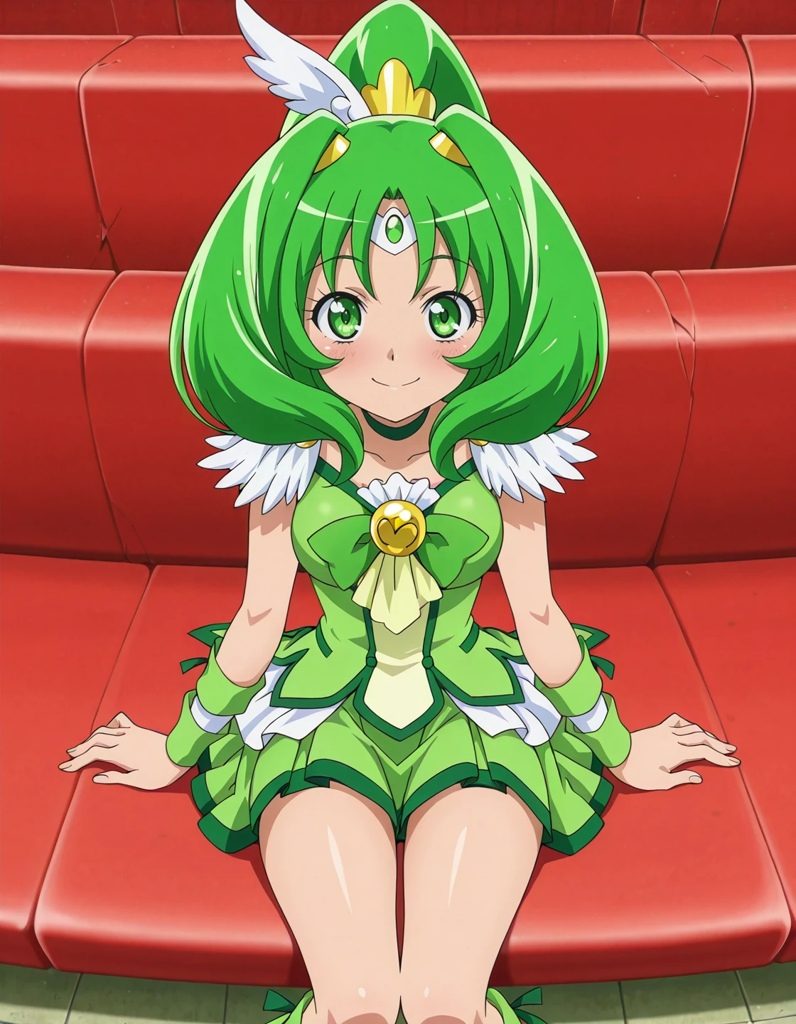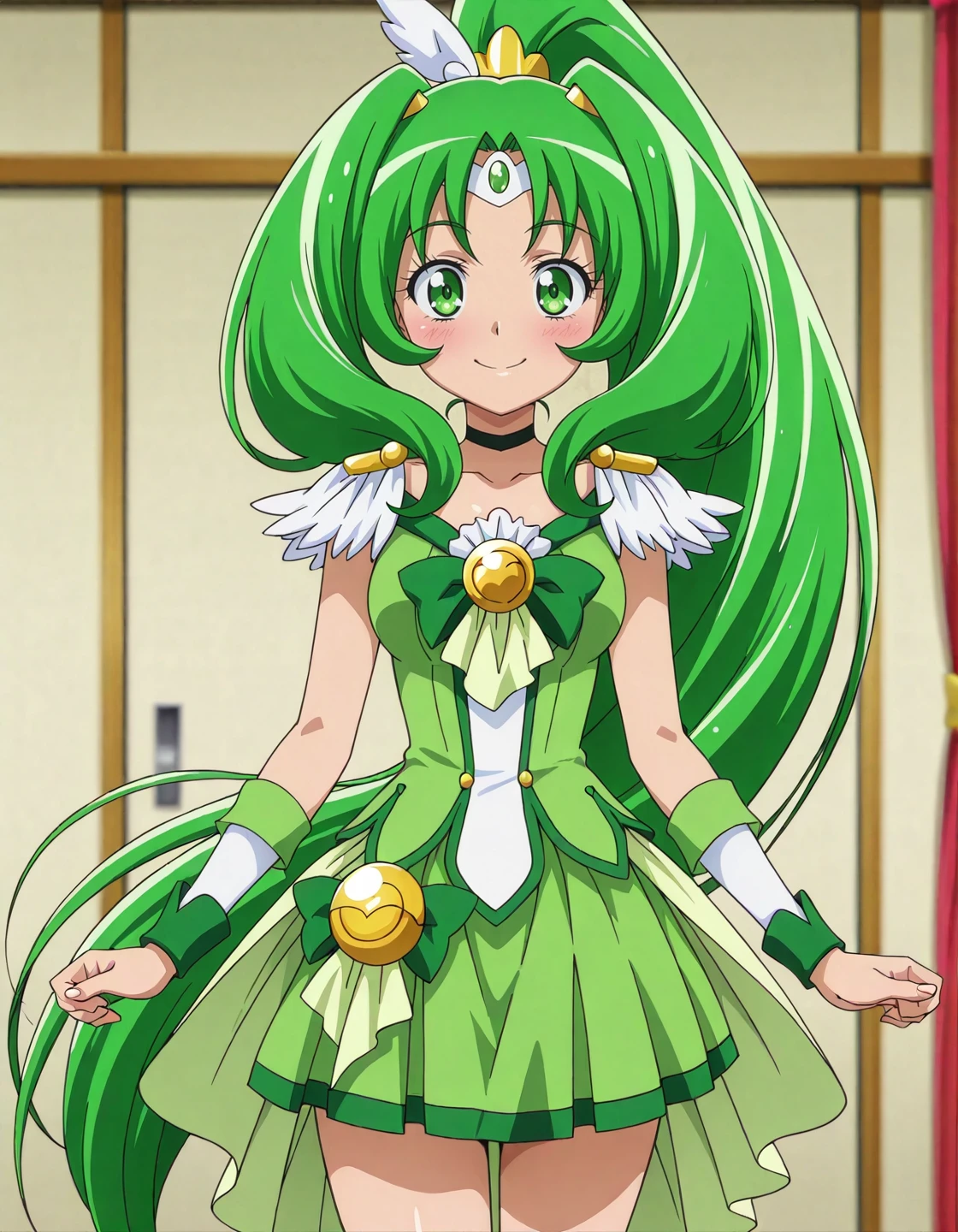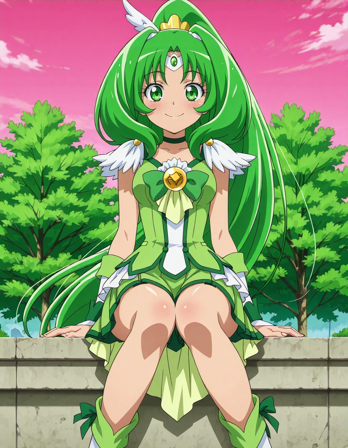 anime screencap, solo,1girl,curemarch,marchcostume,green skirt,<lora:curemarch_IL:0.8> high definition,amazing quality,best quality,very aesthetic,masterpiece,absurdres,