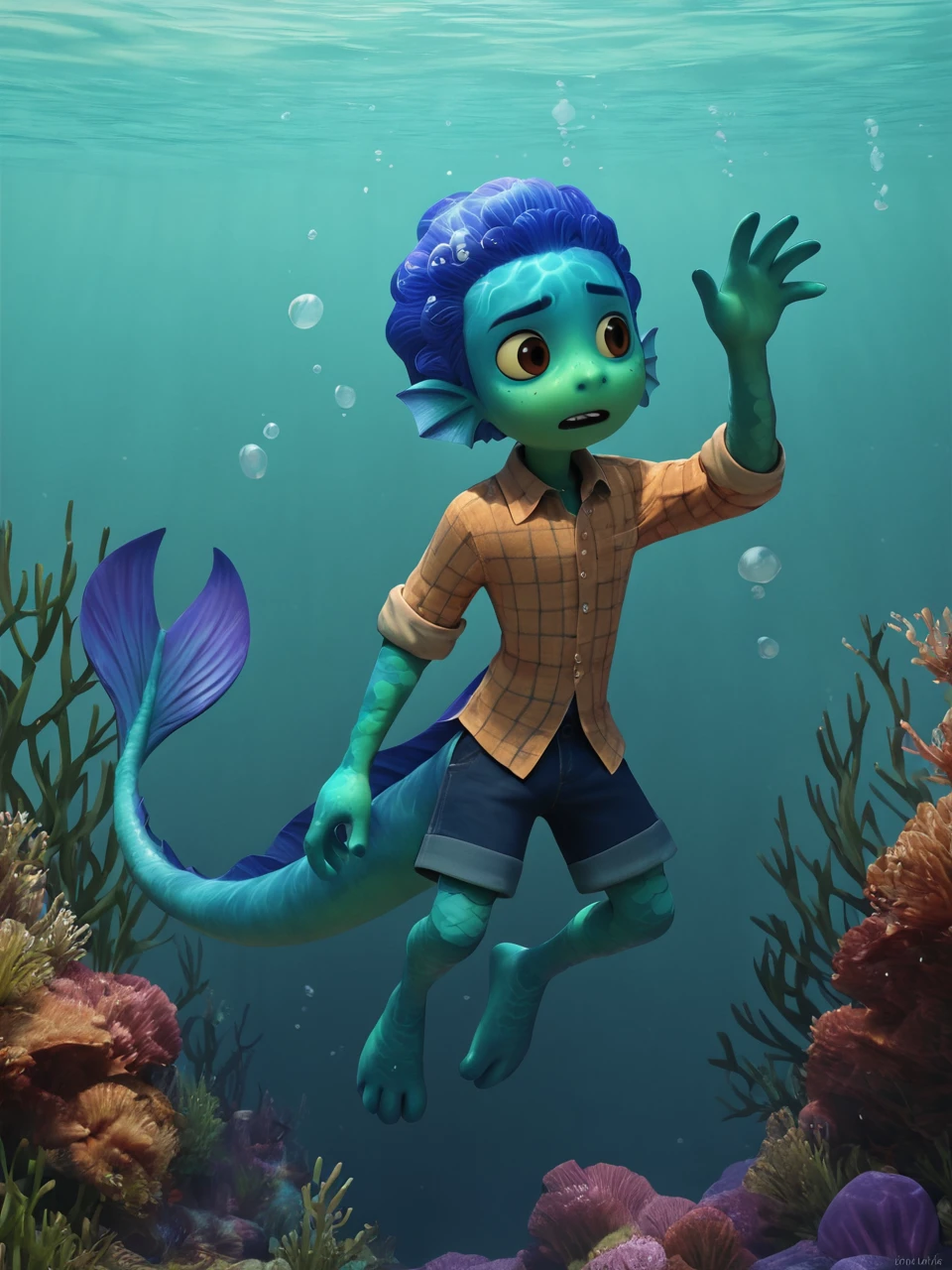 Here is a lora from the "monster" form of Luca Paguro. It works well with in original stile, but for underwater pictures, I recommend freckledvixon's (Vixon's Pony Styles) Detailed v1.0 style!