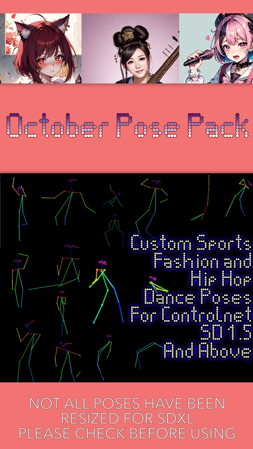 These haven't been fully tested, but poses in the pack DO MATCH aesthetically to the AI images in the model card.