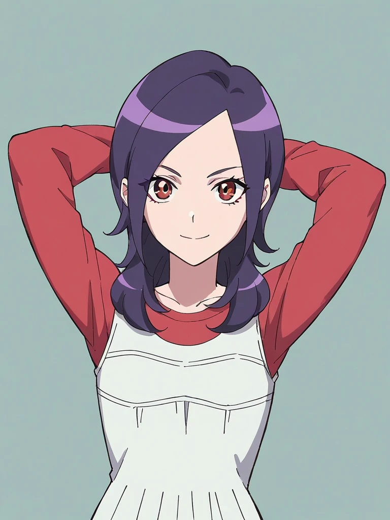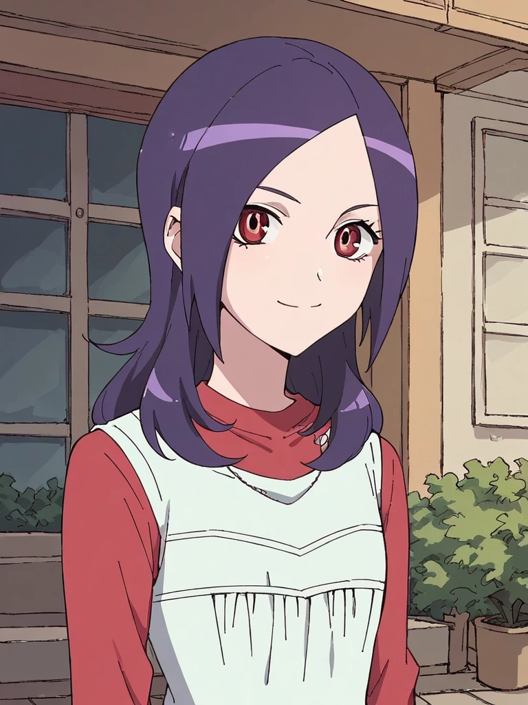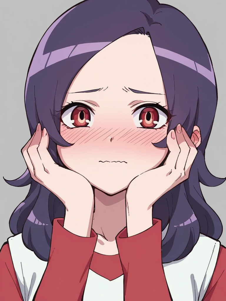 Keywords: higashi setsuna, dark purple hair, red eyes, parted bangs,