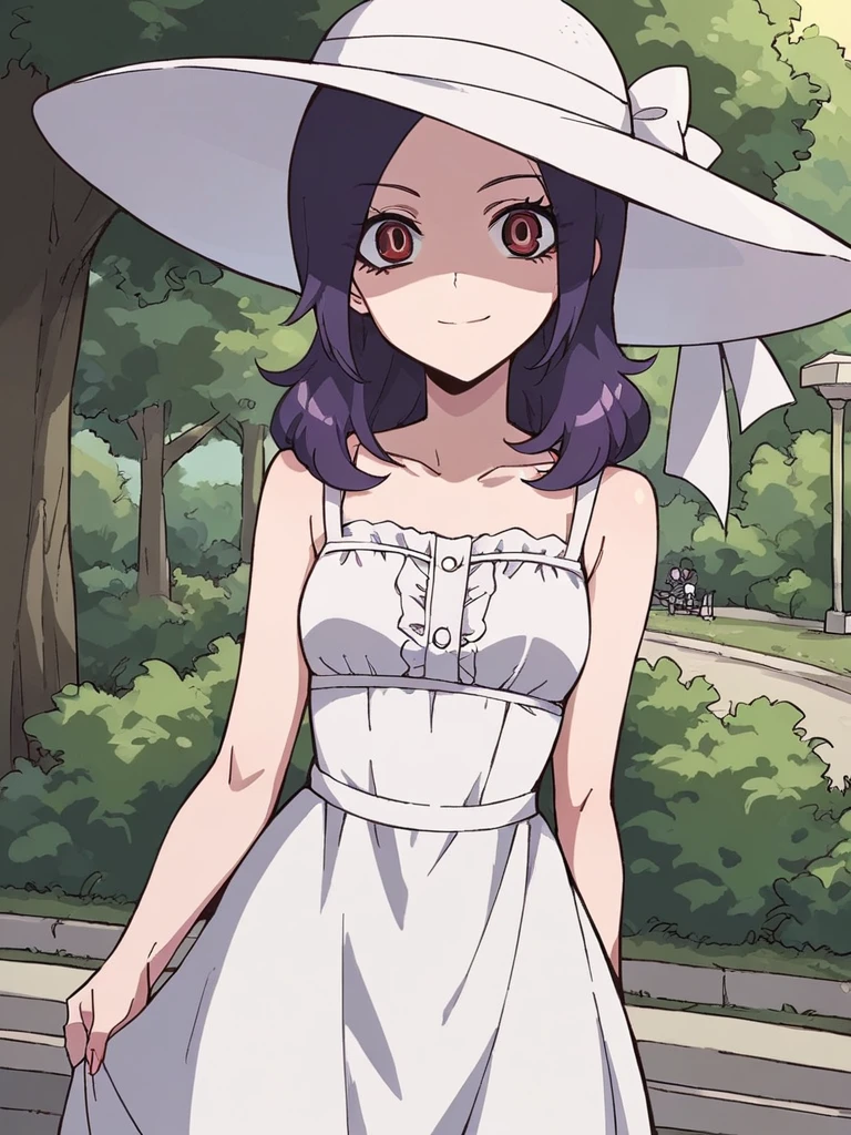 Outfit B (inconsistent): white dress, sun dress, sun hat,