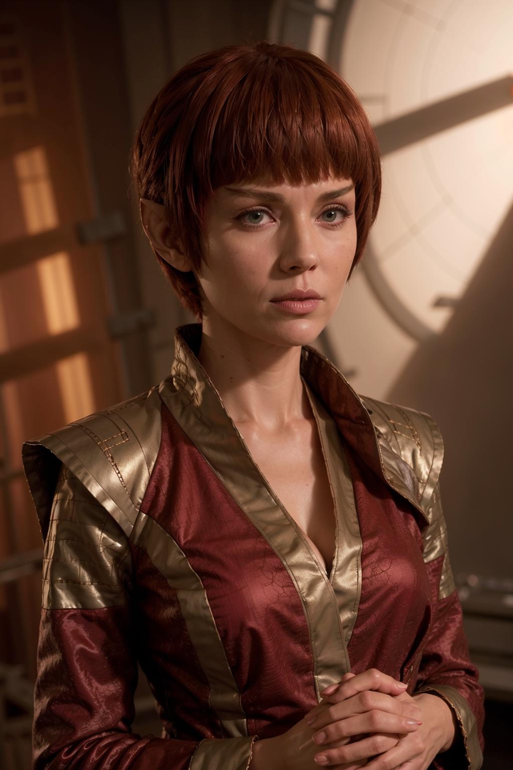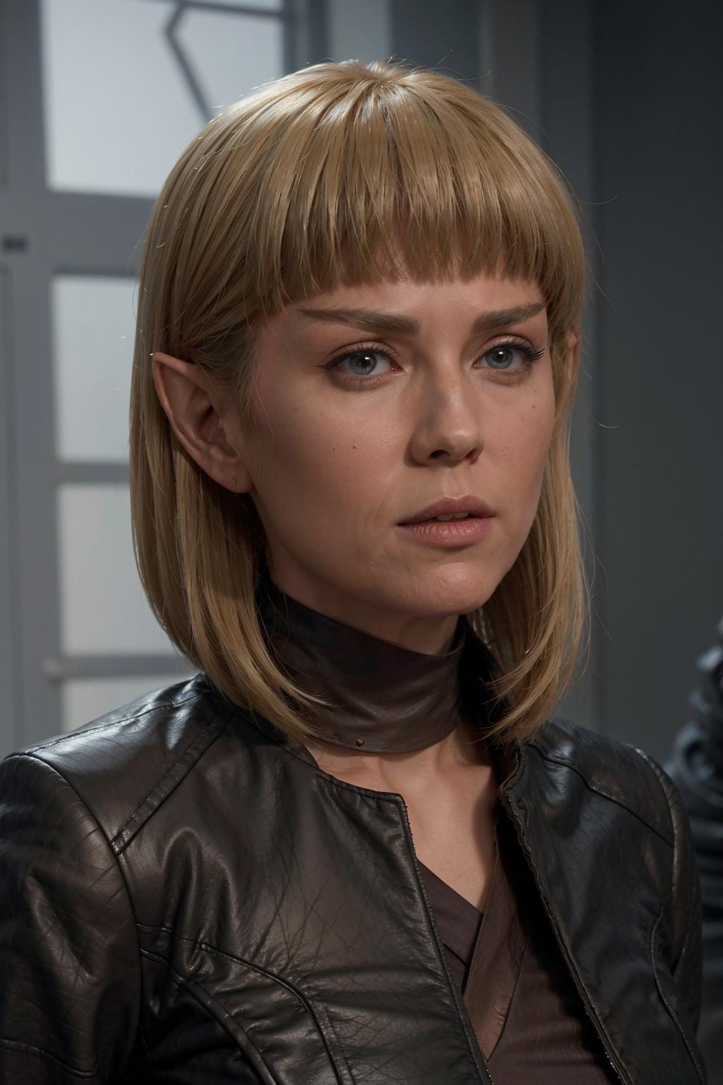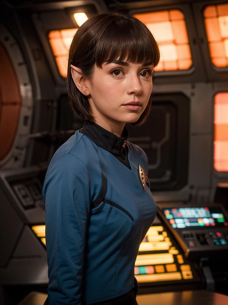 Trigger: vulcan (man/woman), pointed ears, pointed eyebrows, blunt bangs