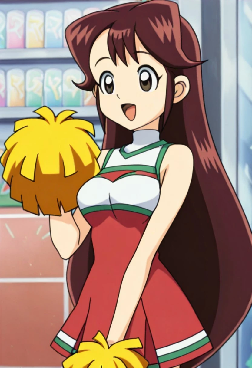 sayuki \(duel masters\), brown hair, long hair, asymmetrical bangs, brown eyes